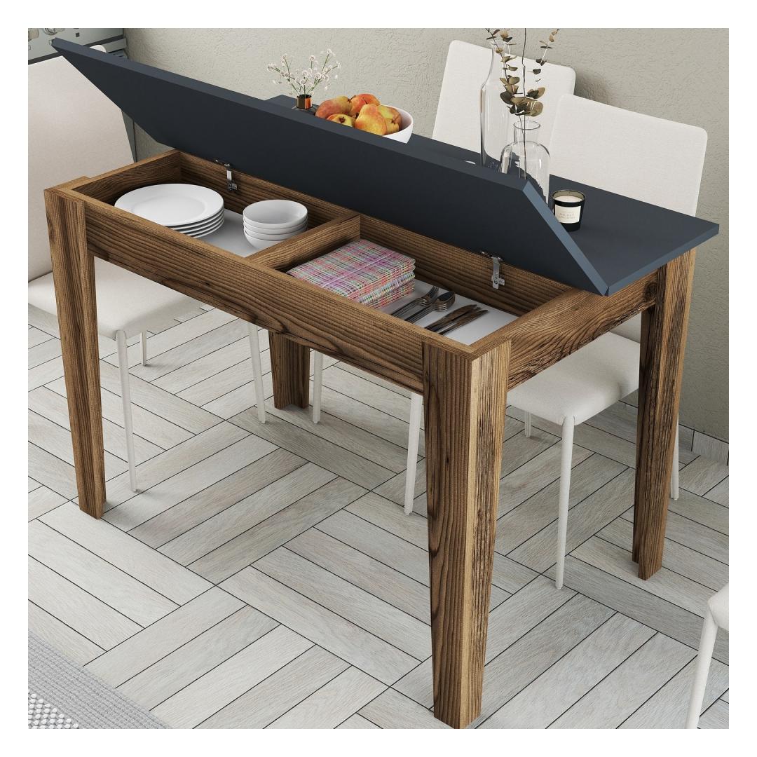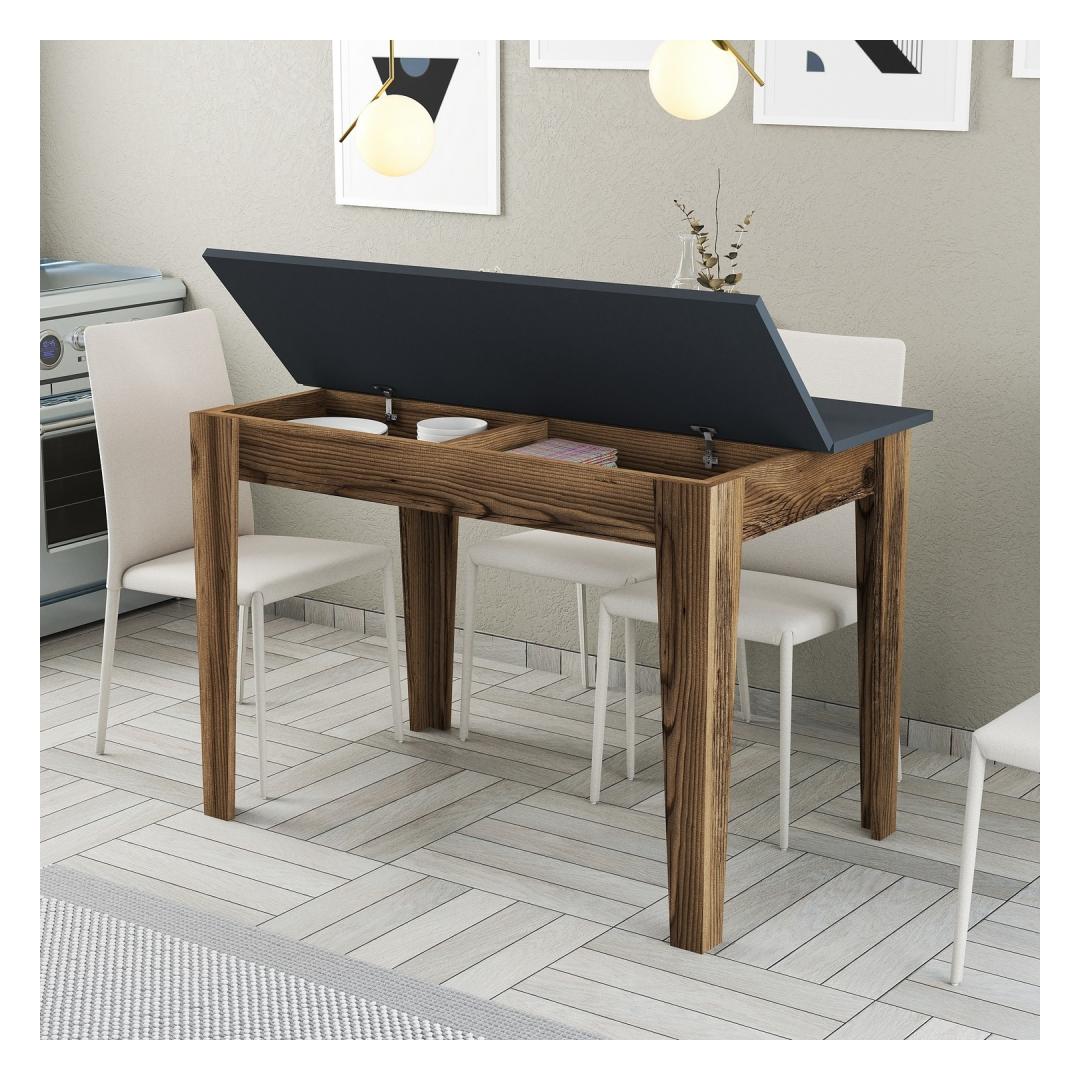 Loo püsivaid mälestusi meie moodsa köögilauagaMuuda oma köök soojaks ja kutsuvaks ruumiks meie moodsa köögilauaga. Armastuse ja tähelepanelikkusega valmistatud laud on loodud selleks, et luua koos oma lähedastega püsivaid mälestusi. Tõstke oma köögi sisekujundust stiilselt ja elegantseltMeie köögilaual on sile ja kaasaegne disain, mis tõstab koheselt teie köögi stiili. Pähklipuu ja antratsiidi värvide kombinatsioon lisab igasse ruumi elegantsust ja rafineeritust.Kindlad ja kergesti puhastatavadMeie köögilaud on valmistatud 100% melamiiniga kaetud puitlaastplaadist, mis peab vastu. 18 mm paksus tagab vastupidavuse ja stabiilsuse, samas kui melamiinkattega laud on lihtne puhastada ja hooldada. Rikkalik hoiuruum teie mugavuse tagamiseksMeie köögilaud pakub tänu avarale hoiuruumile rohkelt ruumi oma köögitarvete hoidmiseks. Hoiuala suurus on 47. 8 cm lai ja 9. 6 cm kõrgusega, mis võimaldab teil hoida oma kööki korrastatuna ja segadusteta. Tehnilised üksikasjad:Materjal: Materjal: Materjal: Materjal: Materjal: Materjal: Materjal: Materjal: materjal: 100% melamiiniga kaetud puitlaastplaatPaksus: 18 mmJalad: SuntalamLaua suurus: Laius: 110 cm, kõrgus: 75 cm, sügavus: 72 cm.Hoiuala suurus: 1,5 cm: Laius: 47. 8 cm, kõrgus: 9. 6 cmVärv: Pähklipuu ja antratsiitVärskendage oma kööki meie moodsa köögilauaga ja looge ruum, kus luuakse mälestusi. Tellige kohe ja kogege stiili, funktsionaalsuse ja vastupidavuse täiuslikku segu. Värv: Walnut Anthracite