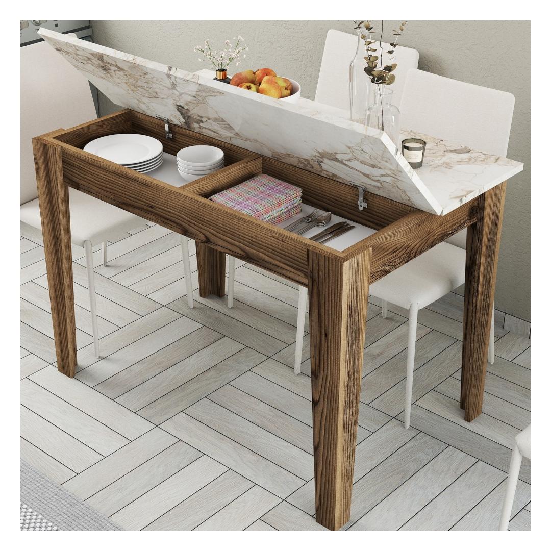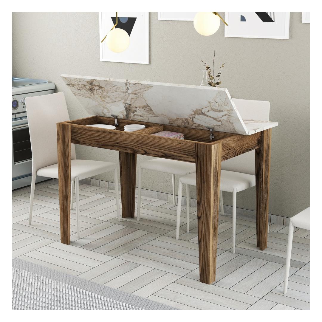 Loo püsivaid mälestusi meie kauni köögilauagaMuutke oma köök soojaks ja kutsuvaks ruumiks meie uimastava köögilauaga. Armastuse ja tähelepanelikkusega valmistatud laud on loodud selleks, et luua koos oma lähedastega püsivaid mälestusi. Tõstke oma köögi sisekujundust stiilselt ja elegantseltMeie elegantse ja moodsa disainiga köögilaud on ideaalne täiendus igasse kaasaegsesse koju. Ühevärviline antratsiitne viimistlus lisab rafineeritust, samas kui pähklipuu ja valge värvikombinatsioon lisab soojust ja elegantsi.Konstrueeritud kestma, disainitud mugavuseksMeie köögilaud on valmistatud 100% melamiiniga kaetud puitlaastplaadist, mis ei ole mitte ainult visuaalselt atraktiivne, vaid ka ehitatud nii, et see peab vastu. 18 mm paksus tagab vastupidavuse ja stabiilsuse, mistõttu sobib see ideaalselt igapäevaseks kasutamiseks. Rikkalik panipaik teie mugavuse tagamiseksMeie köögilaua avar hoiuruum pakub ideaalset lahendust, et hoida oma köögi esmatarbeid organiseeritult ja käeulatuses. Säilitamisala on kujundatud 47. 8 cm laiuse ja 9. 6 cm kõrgusega, mis võimaldab teil hoida kõike alates söögiriistadest kuni kokaraamatuteni. Tehnilised üksikasjad:Materjal: Materjal: Materjal: Materjal: Materjal: Materjal: Materjal: Materjal: materjal: 100% melamiiniga kaetud puitlaastplaatPaksus: 18mmJalad: SuntalamLaua suurus: Laius: 110cm, kõrgus: 75cm, sügavus: 72cmHoiuala suurus: 1,5 cm: Laius: 47. 8cm, kõrgus: 9. 6cmVärv: Pähklipuu ja valgeKontseptsioon: Värviline värv - antratsiit, kaasaegne - uudsusVärskendage oma kööki juba täna meie kauni köögilauaga ja looge ruum, kus luuakse mälestusi. Tellige kohe ja kogege stiili, funktsionaalsuse ja mugavuse täiuslikku segu. Värv: Walnut White