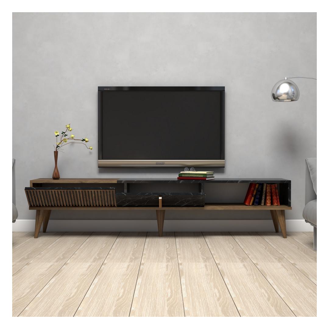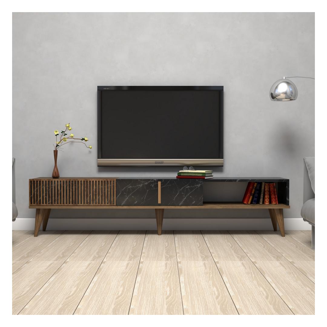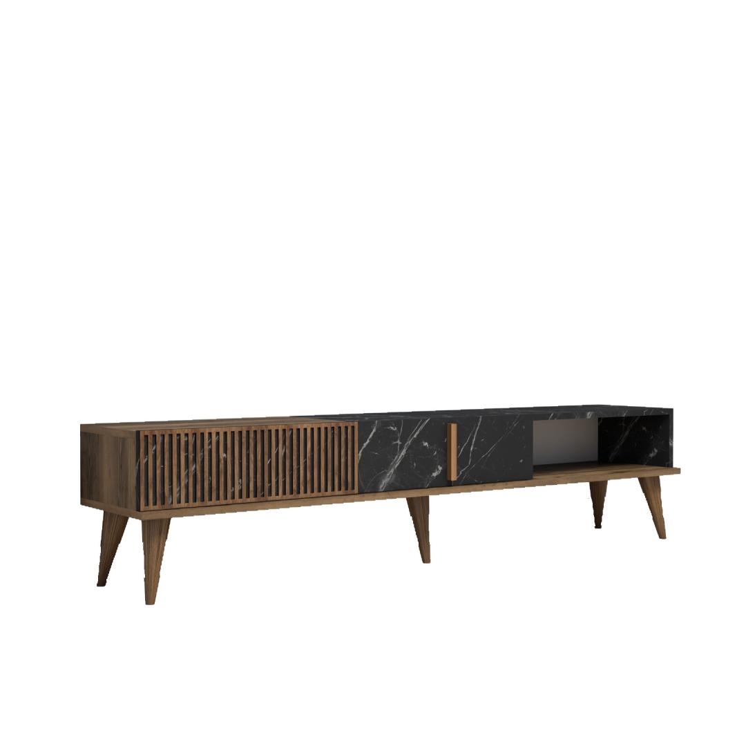 Välistage oma eluruumi kaasaegse ja stiilse teleripuldigaMuuda oma elutuba elegantseks ja kaasaegseks elutoaks meie televiisoripuldi abil. See ülima täpsusega ja detailidele tähelepanu pöörates valmistatud teleripult on loodud selleks, et tõsta teie meelelahutuskogemust, lisades samal ajal teie ruumi elegantsi. Võrratu vastupidavus ja kvaliteetValmistatud 100% melamiiniga kaetud puitlaastplaadist, on see televiisoripult ehitatud kestma. 18 mm paksus tagab erakordse tugevuse, pakkudes usaldusväärset ja kauakestvat lahendust teie televiisorile ja meediaseadmetele. Rikkalik hoiuruumTänu arvukatele riiulitele pakub see televiisoripult rohkelt hoiuruumi kõigile teie meelelahutusvahenditele. Korraldage oma dvd-d, mängukonsoolid ja muud meediaseadmed hõlpsasti, hoides oma elutoa segadusteta ja korrastatuna. Versatiivne disainSeda teleripulka saab hõlpsasti seinale kinnitada, mis võimaldab teil luua õmblusteta ja hõljuvat väljanägemist. Selle moodne ja uudne disain, mille värv on antratsiitne, lisab igasse ruumi kaasaegset tooni, sulandudes vaevata teie olemasoleva sisustusega. Vabastage oma loovusPähklipuu ja musta värvi kombinatsioon annab sellele teleripuldile ainulaadse ja rafineeritud välimuse. Laske oma fantaasial vabalt tegutseda ja looge oma elutuppa vapustav fookuspunkt, mis peegeldab teie isiklikku stiili ja maitset. Tehnilised üksikasjad:Materjal: Materjal: Materjal: Materjal: Materjal: Materjal: Materjal: Materjal: materjal: 100% melamiiniga kaetud puitlaastplaatPaksus: 18 mmLaius: 180 cmKõrgus: 40 cmSügavus: 35 cmJala kõrgus: 20 cmMaksimaalne kandevõime: 30 kgVärv: Pähkelpuu ja mustKontseptsioon: Moodne - uudsus - uudsus. Värv: Walnut Black