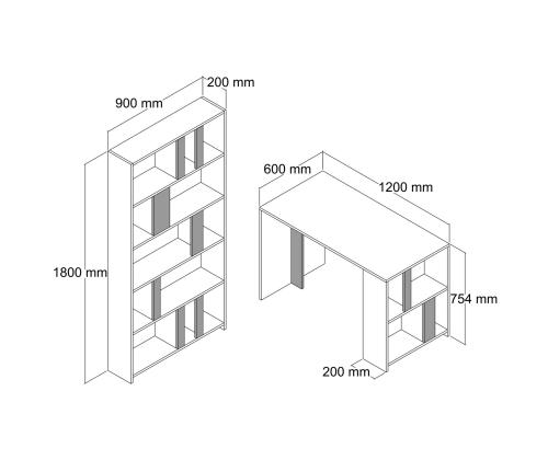 - Bookshelf Size: Width: 90 cm, Height: 180 cm, Depth: 20 cm