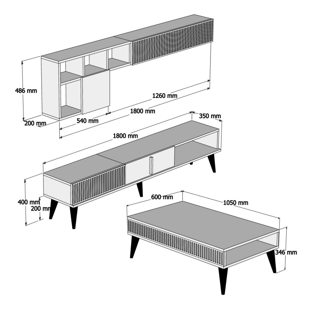 With numerous shelves and the option to fix the set to the wall, this furniture set offers both functionality and style. The TV stand is spacious enough to hold all your entertainment essentials, while the coffee table provides the perfect spot for your morning coffee or evening glass of wine.