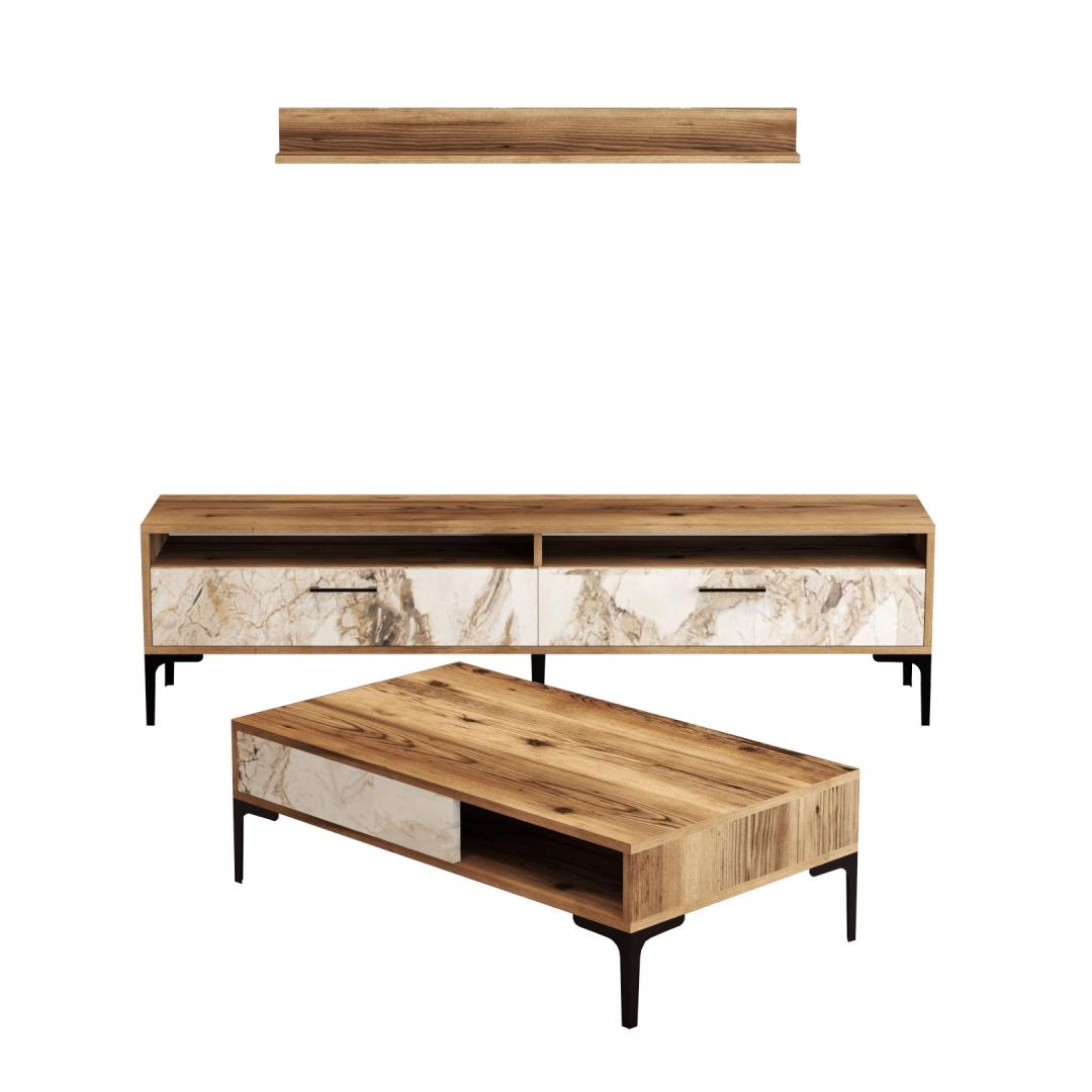 Living Room Furniture Set Istanbul - Walnut, White Marble