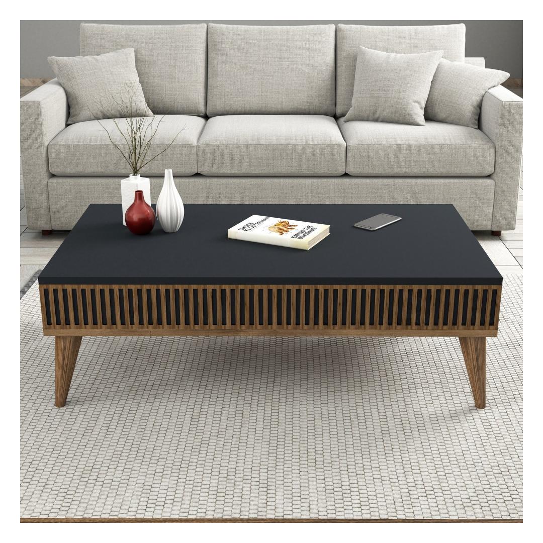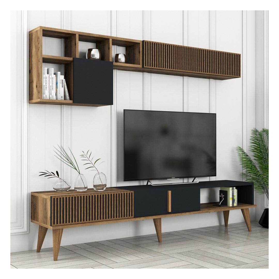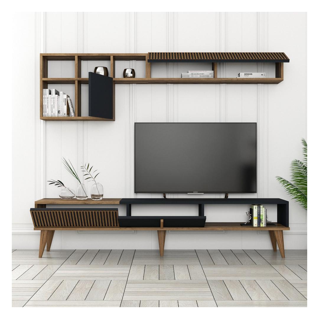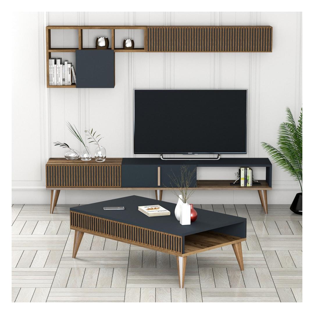 The walnut and anthracite colors of this furniture set create a harmonious blend that effortlessly complements any interior decor. Add a touch of sophistication and elegance to your living room with this timeless combination.