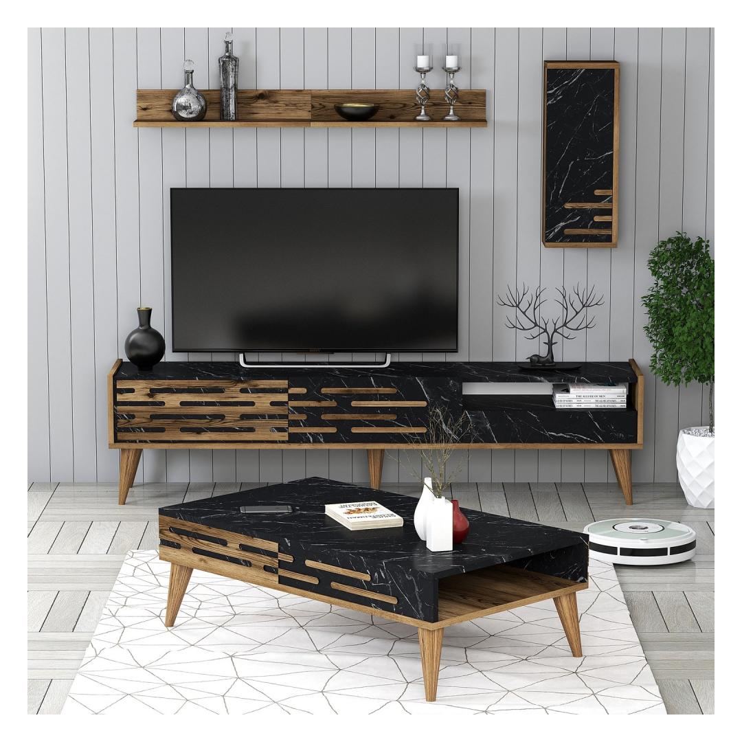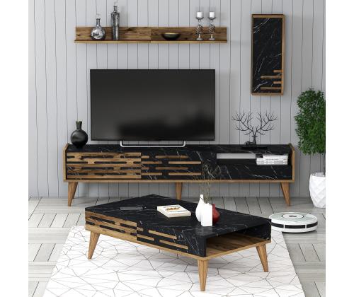 Living Room Furniture Set Valensiya - Walnut, Black, Marble