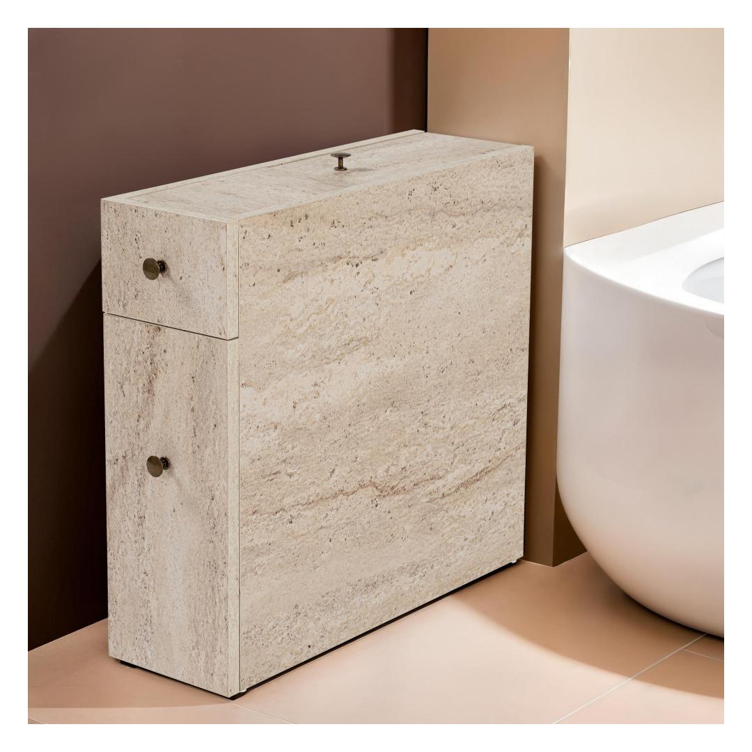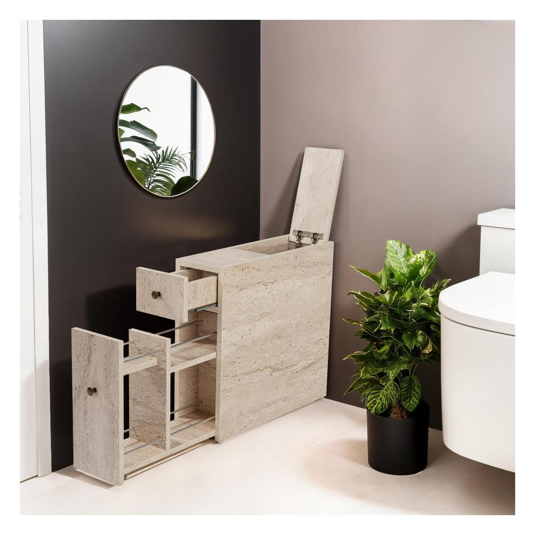 Crafted from 18mm thick particle board, this cabinet is built to last. The Travertine color adds a touch of warmth to your bathroom, creating a cozy and inviting atmosphere. The option to fix it to the wall provides added stability and security, giving you peace of mind knowing your cabinet is securely in place.