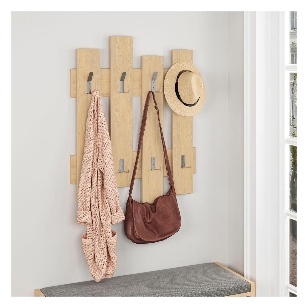 With its solid color and traditional design, our Hanging Coat Rack effortlessly adds a touch of elegance to any room. The rich Oak color(s) of the product create a warm and inviting atmosphere, making it the perfect accessory for your hallway, bedroom, or even your office.