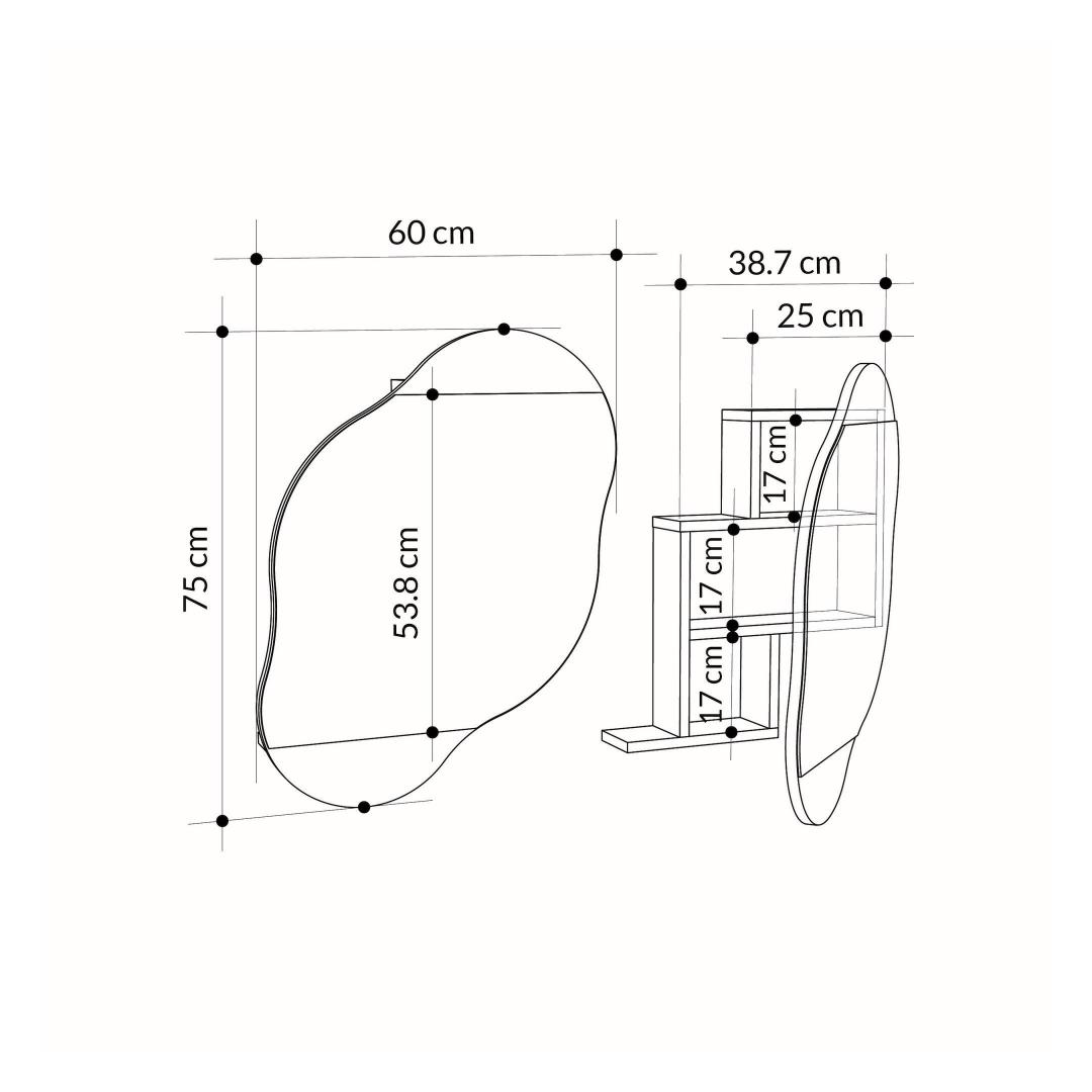 Width: 60 cm Height: 75 cm Depth: 13 cm