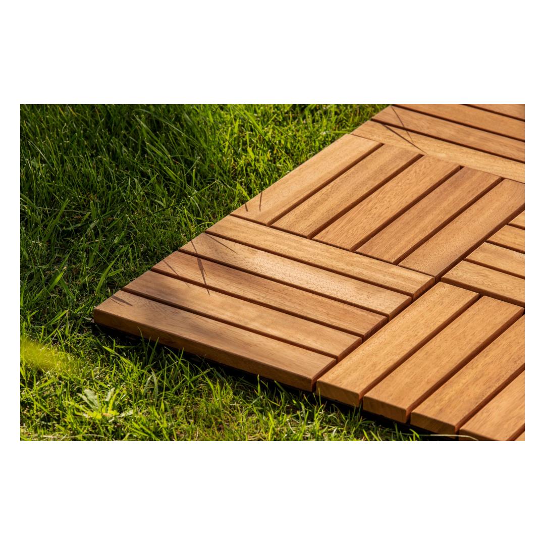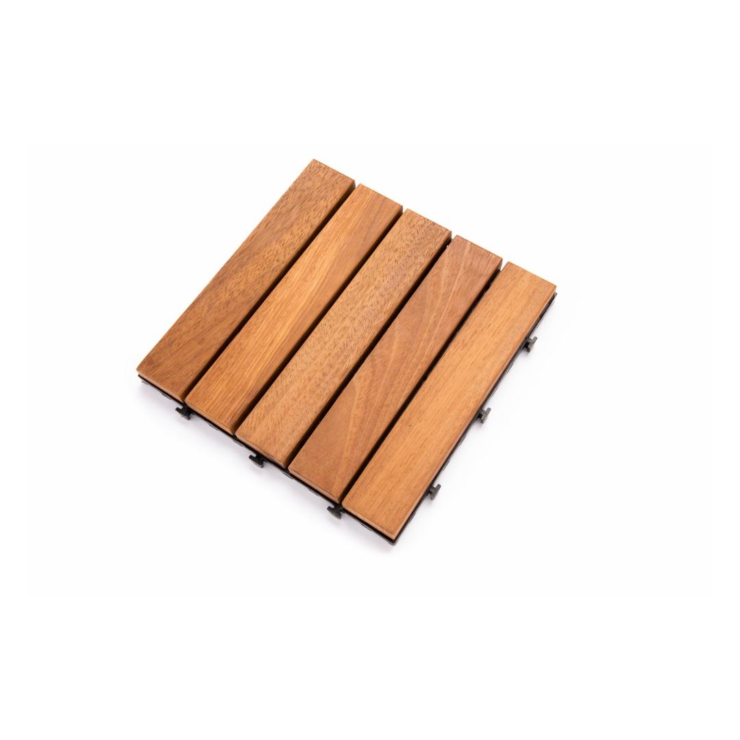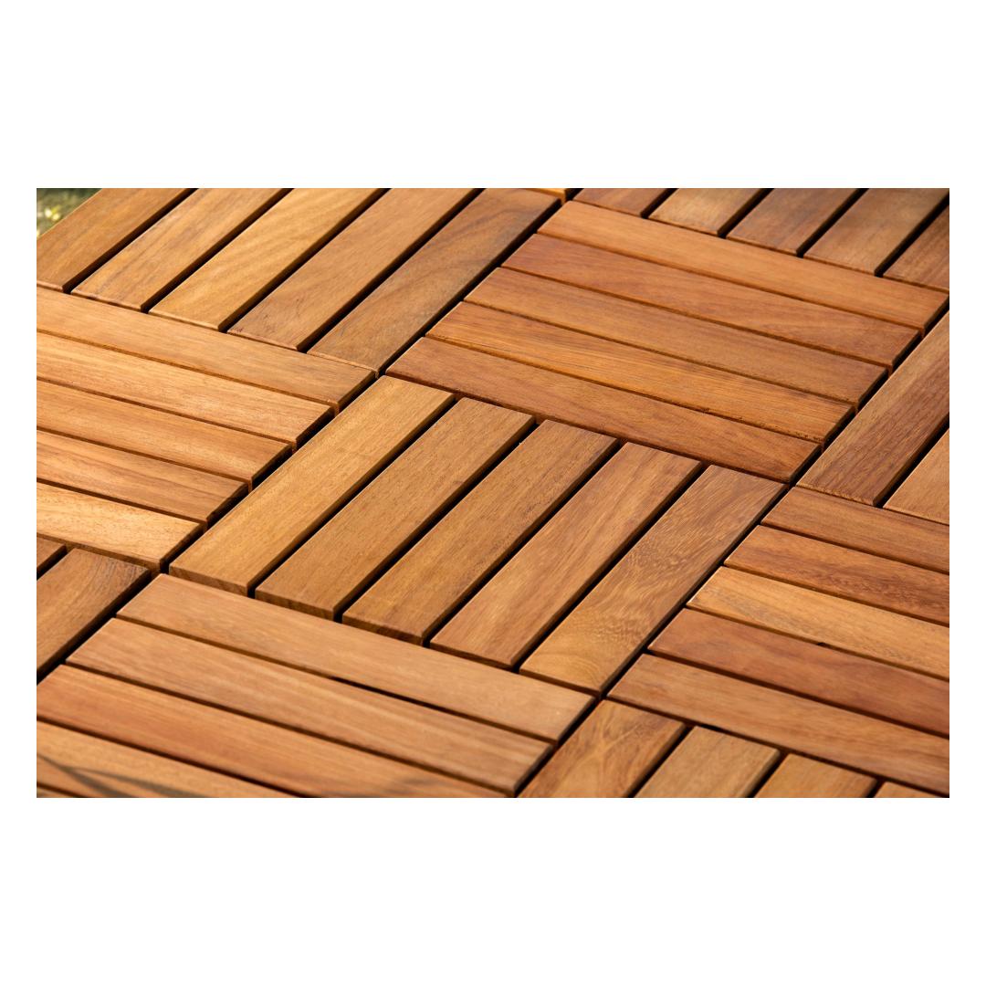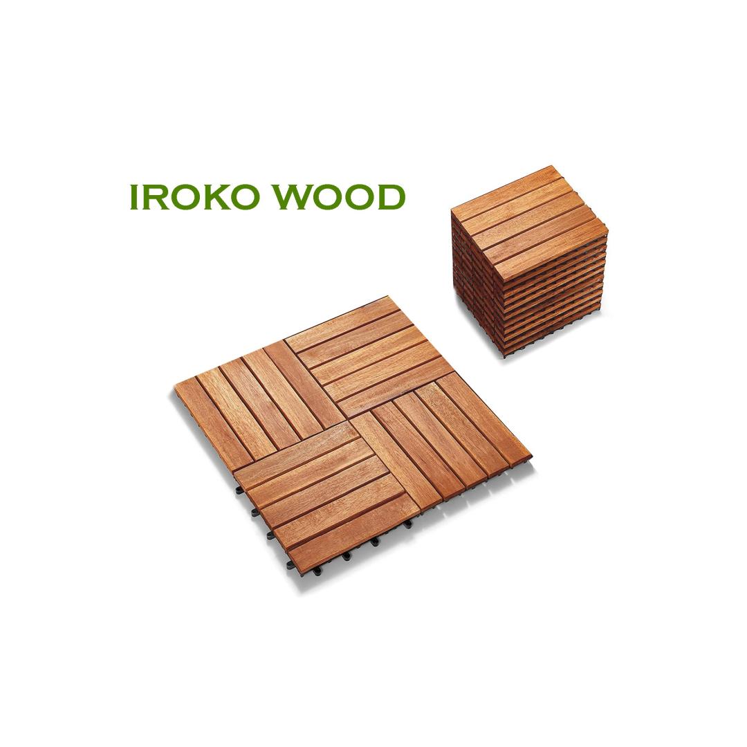 Enhance the beauty of your outdoor space with our remarkable Deck Tile Set. Crafted with 100% IROKO WOOD, this set of 10 deck tiles is designed to bring elegance and sophistication to any patio, balcony, or garden.