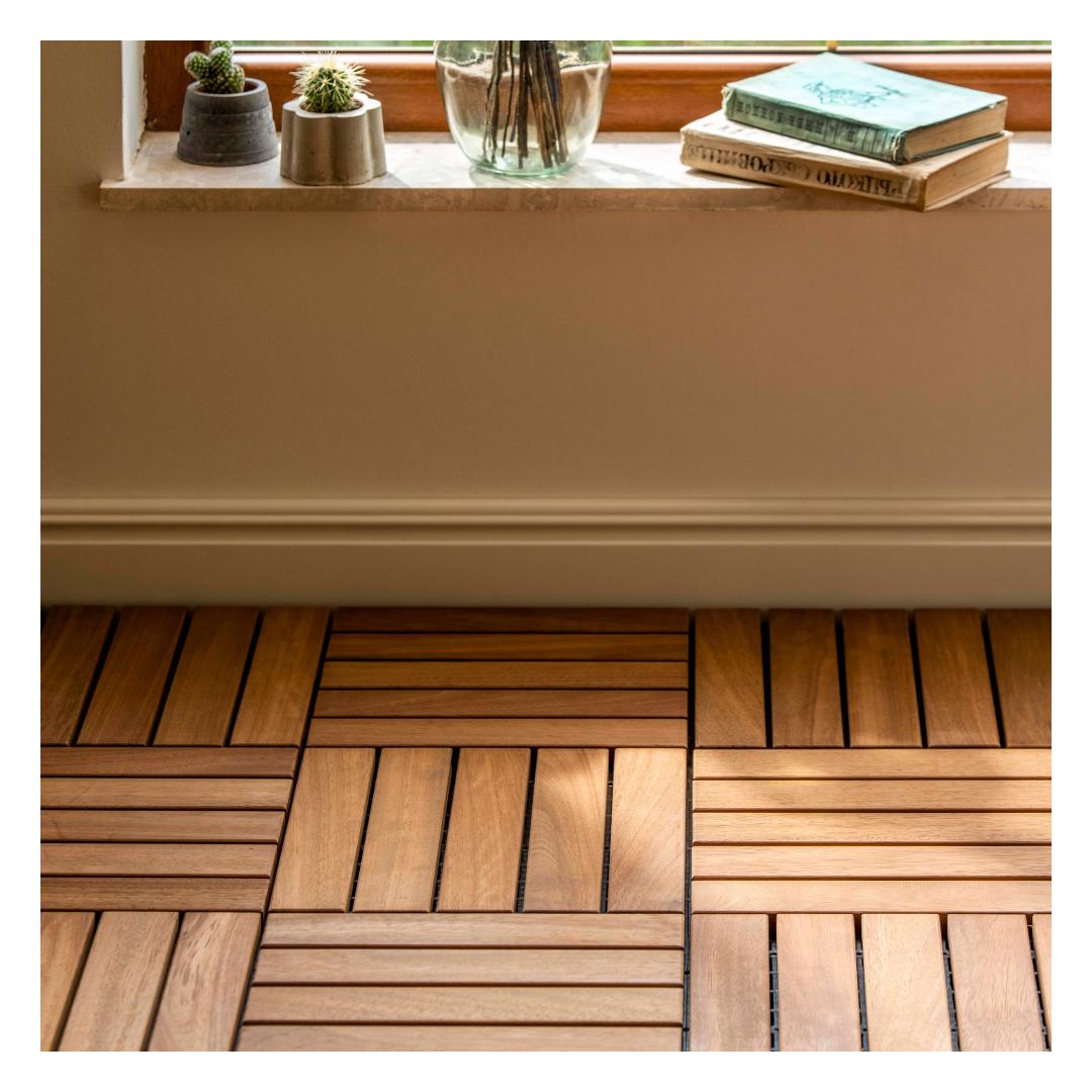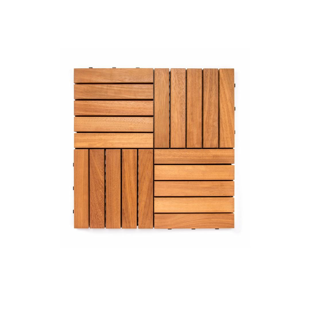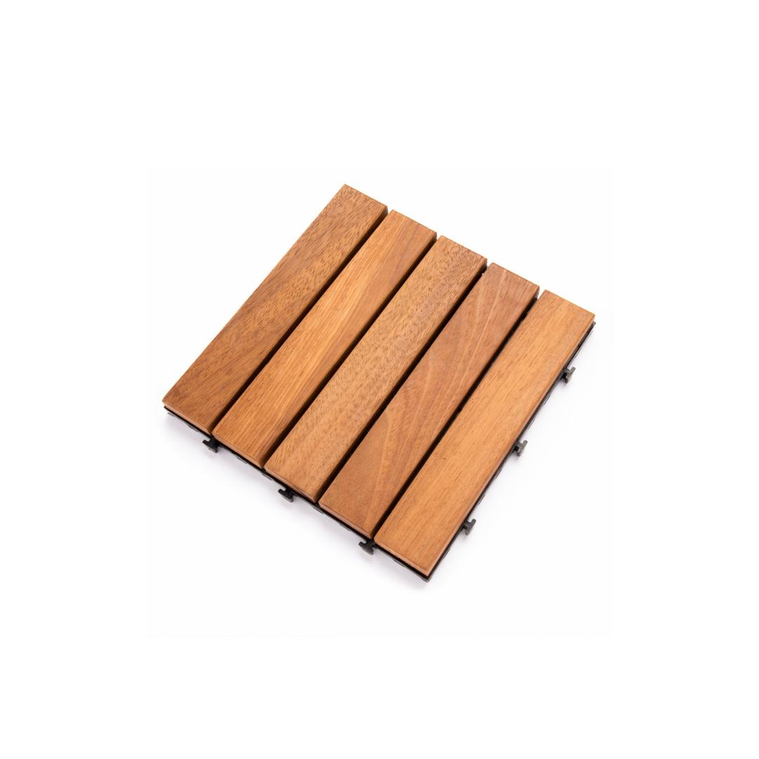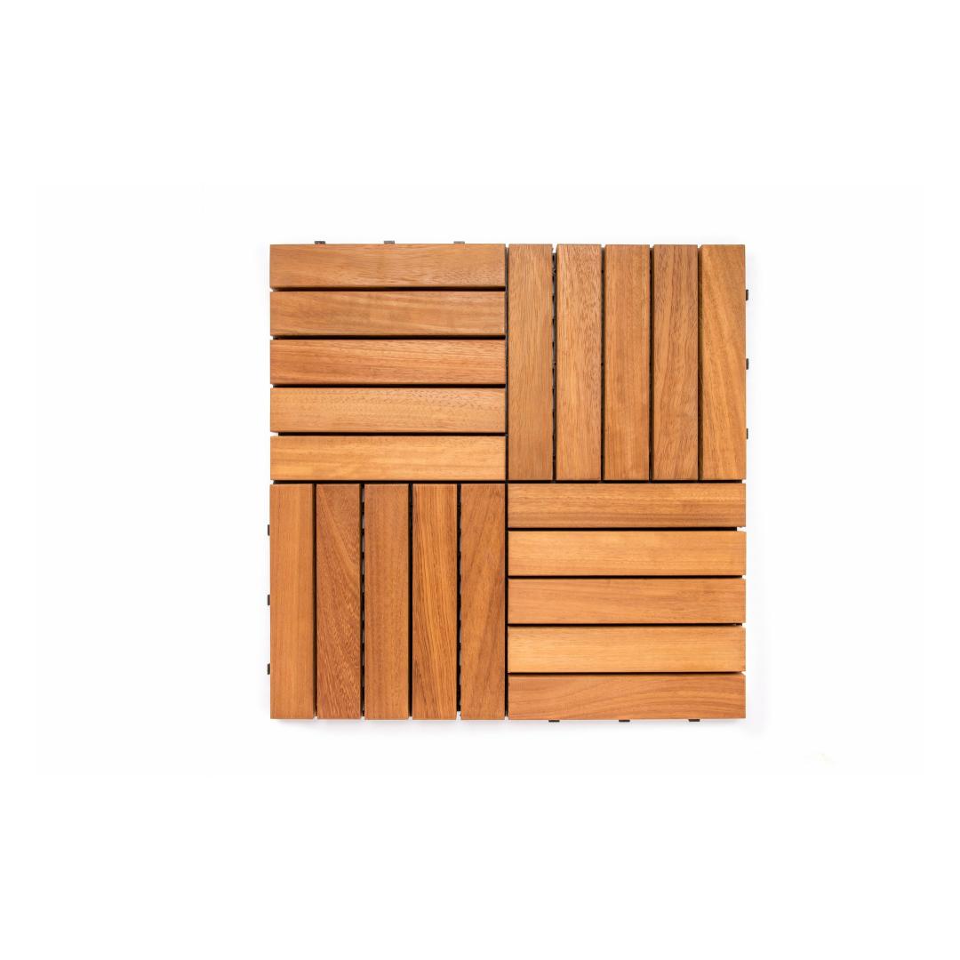 Enhance the beauty of your outdoor space with our remarkable Deck Tile Set. Crafted with 100% IROKO WOOD, this set of 10 deck tiles is designed to bring elegance and sophistication to any patio, balcony, or garden.