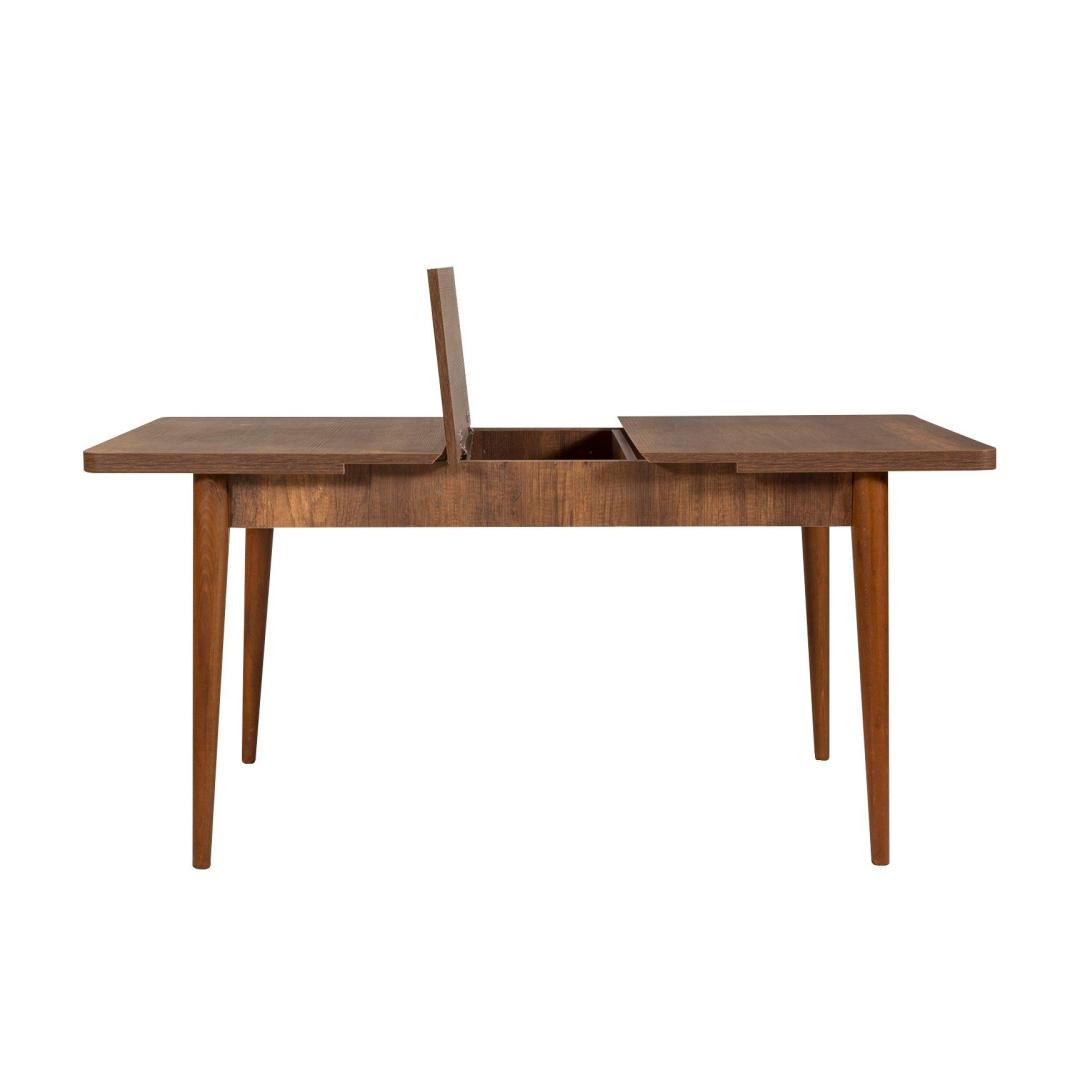 Loo püsivaid mälestusi meie elegantse pikendatava söögilaua ja toolide komplektigaMuutke oma söögituba stiilseks ja kutsuvaks ruumiks meie suurepärase pikendatava söögilaua ja toolide komplektiga. See komplekt on valmistatud ülima hoole ja tähelepanelikkusega, et luua koos oma lähedastega püsivaid mälestusi. Võrratu kvaliteet ja vastupidavusMeie söögilaua ja toolide komplekt on valmistatud 100% melamiiniga kaetud puitlaastplaadist, mis peab vastu ajaproovile. Melamiinkate mitte ainult ei suurenda selle vastupidavust, vaid lisab ka elegantsi üldisele disainile. Täiuslik suurus igaks juhuks129 cm laiuse, 75 cm kõrguse ja 80 cm sügavusega söögilaud mahutab mugavalt teie pere ja sõbrad. Kui vajate rohkem ruumi? pikendage lauda lihtsalt 163 cm laiuseni, mis võimaldab kõigil ümberringi koguneda ja üksteise seltskonda nautida. Toolid, mille laius on 47 cm, kõrgus 90 cm ja sügavus 45 cm, pakuvad optimaalset mugavust tundide pikkuseks söögitegemiseks. Tõstke oma söögikogemustToolide puhul kasutatud 100% linasest kangast, mis lisab teie söögikogemusele elegantsi ja luksust. Pähklipuu ja antratsiidi värvide kombinatsioon loob uimastava kontrasti, mis täiendab vaevata iga sisekujundust. Tehnilised üksikasjad:Söögilaua suurus: Laius: 129 cm, kõrgus: 75 cm, sügavus: 80 cm (1 tk).Avatud laua suurus: Laius: 163 cm, kõrgus: 75 cm, sügavus: 80 cm. Laius: 47 cm, kõrgus: 90 cm, sügavus: 45 cm (2 tk)Istme kõrgus: 45 cmPinki suurus: Laius: 110 cm, kõrgus: 50 cm, sügavus: 40 cm (1 tk)Kangas: 100% linaVärv: Pähkelpuu ja antratsiit Värv: Walnut Anthracite