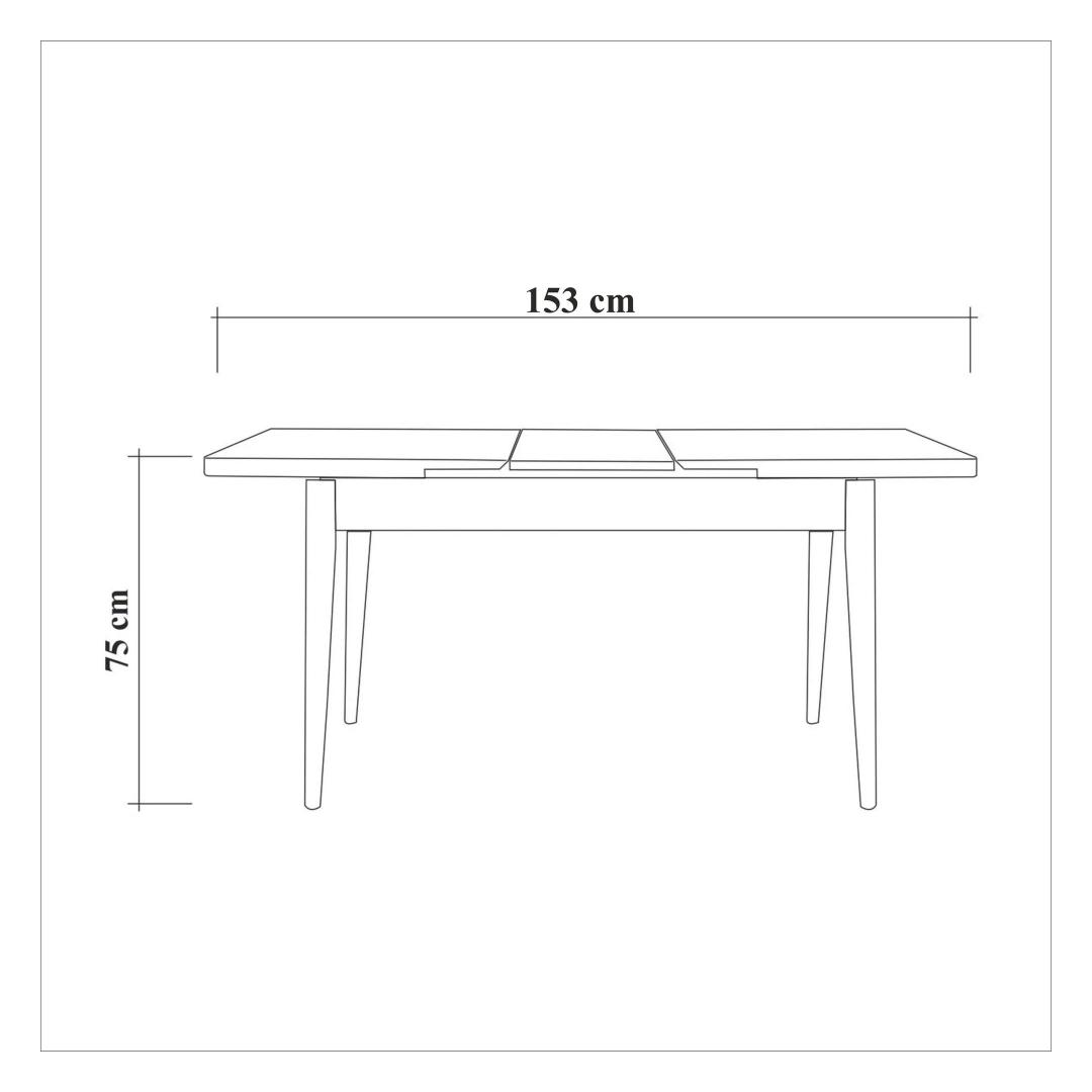 Open Table Size: Width: 153 cm Height: 75 cm Depth: 75 cm