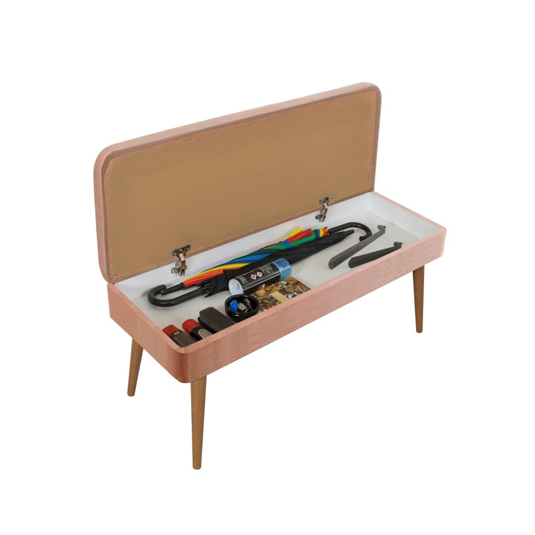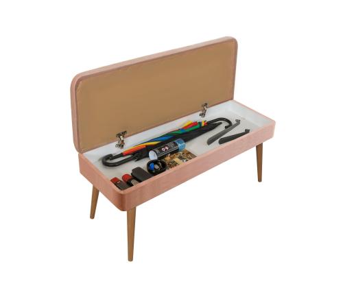 The bench, measuring 105cm in width, 50cm in height, and 40cm in depth, offers a cozy spot to sit and put on your shoes. Upholstered in 100% velvet fabric, it provides a luxurious and comfortable seating experience.