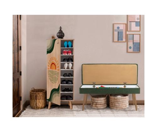 Our hallway furniture set features 100% linen fabric, ensuring a soft and cozy seating experience. The combination of Sonomo and Green colors adds a touch of vibrancy and elegance to your hallway, making it a truly inviting space.