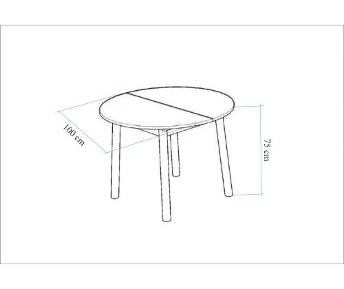 Table: Width: 100 cm Height: 75 cm Depth: 100 cm