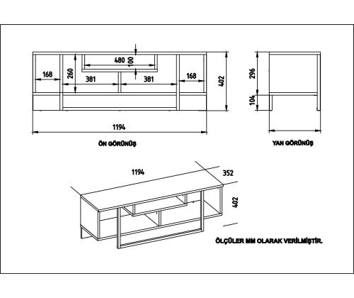 TV Stand Size: Width: 119,4 cm Height: 40,2 cm Depth: 35,2 cm