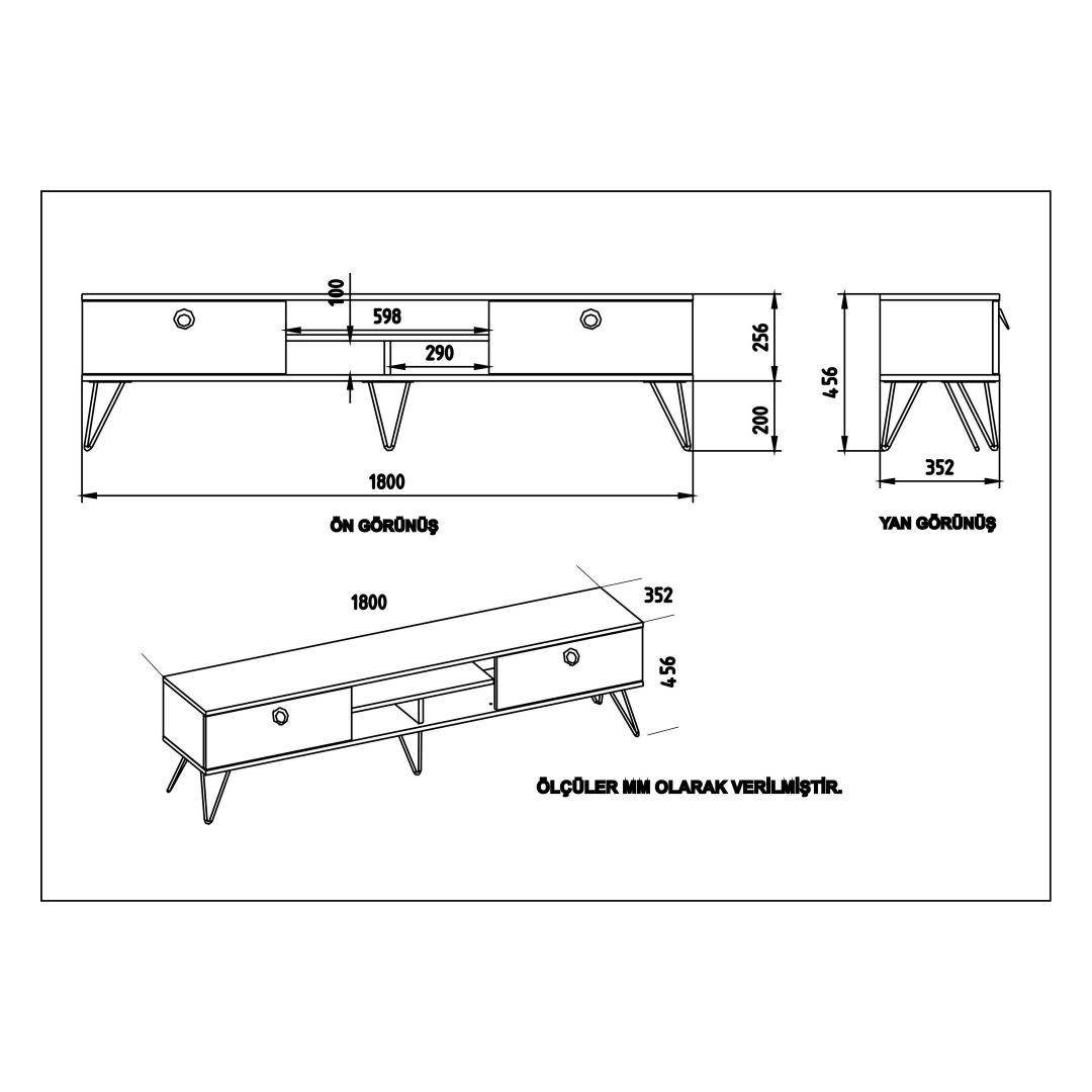 TV Stand Size: Width: 180 cm Height: 45,6 cm Depth: 35,2 cm