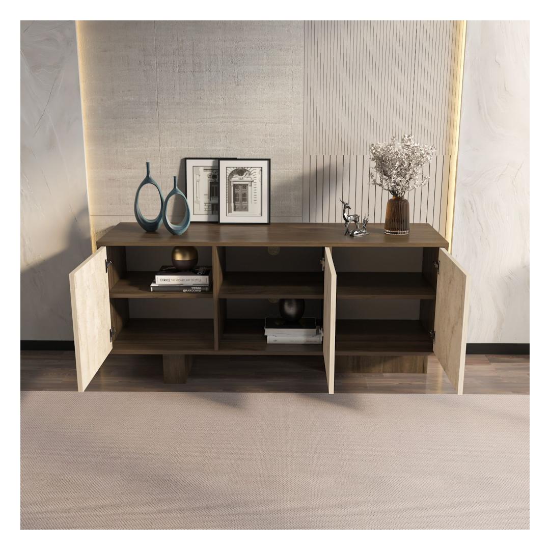 Esitleme meie kaunist pähklipuidust ja travertiini külglauda, mis toob teie koju elegantsi ja funktsionaalsuse. See külglaud ei ole lihtsalt mööbliese, vaid stiili ja rafineerituse väljendus.Elegants ja funktsionaalsus koosSelle külglauda rikkalikud pähklipuidu ja travertiini värvid tõstavad koheselt iga ruumi ilmet. Selle voolujooneline disain ja puhtad jooned muudavad selle mitmekülgseks mööbliesemeks, mis sobib igasuguste sisustustüüpidega, alates modernsest kuni traditsioonilise.Kvaliteetne käsitööValmistatud 100% melamiinkattega puitlaastplaadist, on see külglaud mitte ainult ilus, vaid ka vastupidav ja pikaealine. 18 mm paksune plaat tagab stabiilsuse ja tugevuse, muutes selle usaldusväärseks mööbliesemeks aastateks.Rohke hoiuruumLaiusega 150 cm, kõrgusega 51,5 cm ja sügavusega 45 cm pakub see külglaud piisavalt hoiuruumi kõigi teie oluliste asjade jaoks. Olgu see siis teie söögitoas nõude hoidmiseks või elutoas dekoratiivsete esemete väljapanekuks, see külglaud aitab teil stiilselt korras püsida.Tehnilised andmed:Materjal: 100% melamiinkattega puitlaastplaatPaksus: 18 mmLaius: 150 cmKõrgus: 51,5 cmSügavus: 45 cmVärv: Pähklipuu ja travertiini Värv: Walnut Travertine