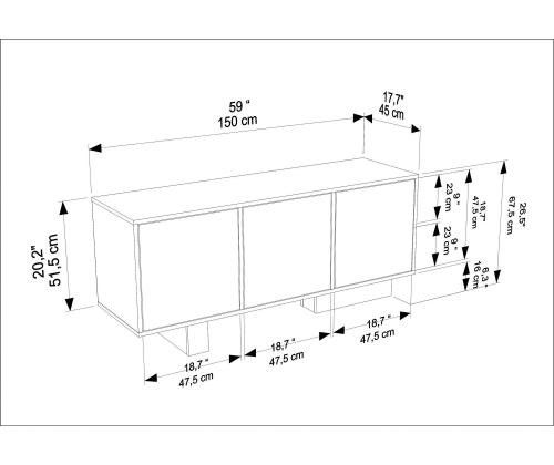 Width: 150 cm Height: 51,5 cm Depth: 45 cm