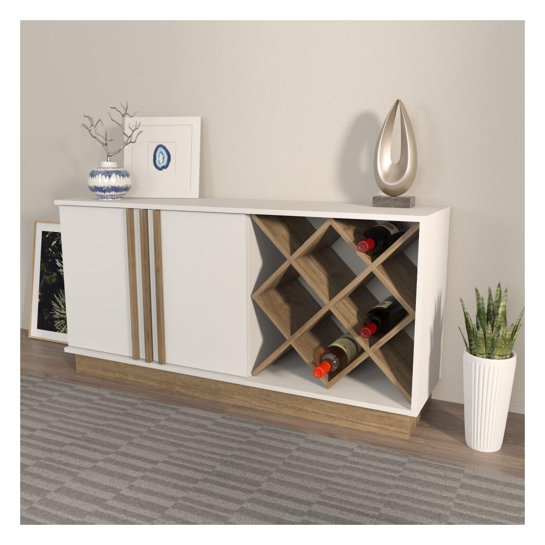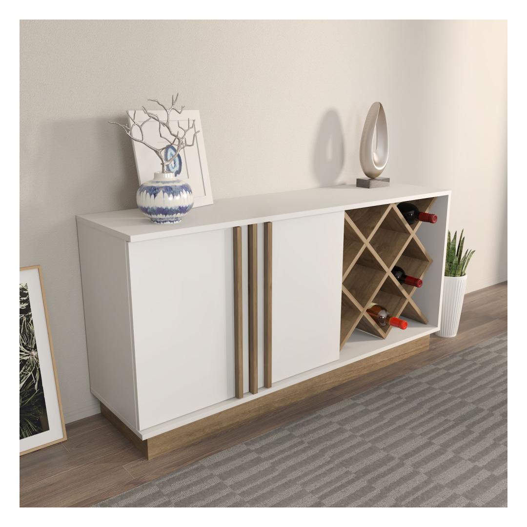 Esitleme meie hämmastavat ja mitmekesist külglauda, mis on hädavajalik lisa igasse koju. See ese ei ole lihtsalt mööbel, vaid stiili ja rafineerituse väljendus. Sujuv disain ja elegantne valge ja pähklipuu värvikombinatsioon tõstavad koheselt iga ruumi ilmet, lisades sellele modernset hõngu.Tõsta oma ruumiMuuda oma elutuba, söögituba või koridor selle suurepärase külglaudaga. Selle puhtad jooned ja kaasaegne disain teevad sellest ideaalse lisandi igasse ruumi, olgu sul eelistuseks minimalistlik esteetika või traditsioonilisem stiil. Kaks avarat kappi ja kolm sahtlit pakuvad piisavalt hoiuruumi, et hoida oma asjad organiseerituna ja kergesti ligipääsetavana.Kvaliteetne käsitööValmistatud 100% melamiinkattega puitlaastplaadist, on see külglaud mitte ainult stiilne, vaid ka vastupidav ja pikaealine. 18 mm paksus tagab stabiilsuse ja tugevuse, samas kui täpsed mõõtmed 148 cm laius, 70 cm kõrgus ja 40 cm sügavus teevad sellest ideaalse suuruse igasse ruumi. Valge ja pähklipuu värvikombinatsioon lisab sinu kodu sisustusele soojust ja rafineeritust.Tehnilised andmed:Materjal: 100% melamiinkattega puitlaastplaatPaksus: 18 mmMõõtmed: 148 cm (L) x 70 cm (K) x 40 cm (S)Värv: Valge ja pähklipuu Värv: White Walnut