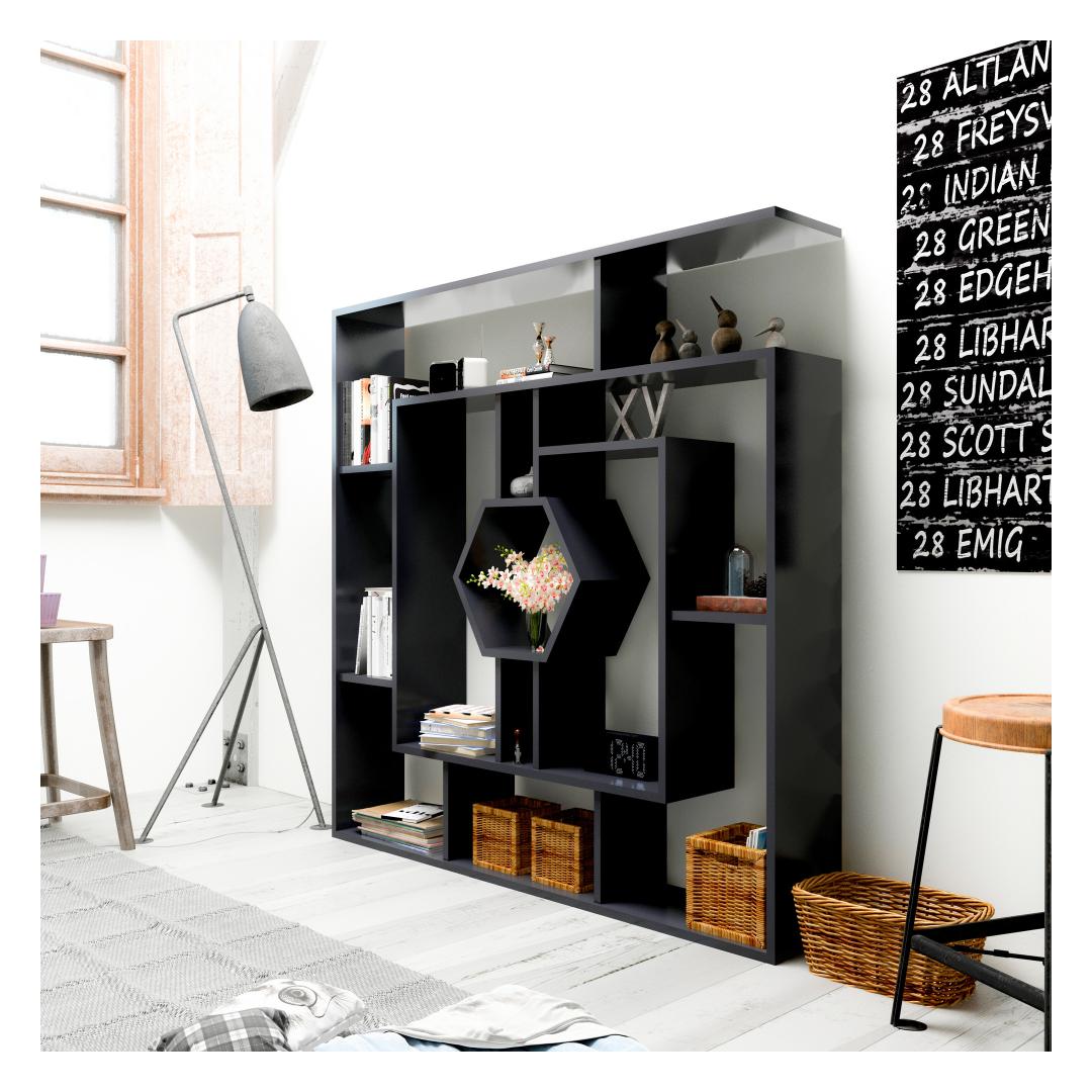 Transformeeri oma ruumi moodsa ja uudse raamaturiiuligaLooge oma koju lummav ja stiilne atmosfäär meie moodsa ja uudse raamaturiiuliga. See peen mööblitükk on loodud lisama elegantsi ja rafineeritust igasse ruumi. Vabastage oma loovus rohke hoiuruumigaArvukate riiulitega pakub see raamaturiiul piisavalt ruumi kõigi teie lemmikraamatute, dekoratiivsete esemete ja muu jaoks. Korraldage oma asjad nii, et need peegeldaksid teie unikaalset isiksust ja stiili.Parandage oma kodu esteetilisustSelle raamaturiiuli sile must värvus lisab igale ruumile elegantsi ja elegantsi. See sulandub vaevata mis tahes sisekujundusega, muutes selle teie kodu mitmekülgseks täienduseks. Kindlad ja kauakestvadValmistatud 100% melamiiniga kaetud puitlaastplaadist, on see raamaturiiul ehitatud nii, et see peab vastu. Selle 18 mm paksus tagab vastupidavuse ja tugevuse, pakkudes teile usaldusväärset hoiulahendust aastateks. Maksimeerida oma ruumi seinakinnitusegaSeda raamaturiiulit saab hõlpsasti seinale kinnitada, mis võimaldab teil maksimeerida oma ruumi ja luua segadusteta keskkonna. Ütle hüvasti kitsastele ruumidele ja tere korrastatumale ja avaramale ruumile. Tehnilised üksikasjad:Materjal: Materjal: Materjal: Materjal: Materjal: Materjal: Materjal: Materjal: materjal: 100% melamiiniga kaetud puitlaastplaatPaksus: 18mmRaamaturiiuli suurus: Laius: 134 cm, kõrgus: 134 cm, sügavus: 22 cm.Külgriiuli kõrgus: 23 cmAlumise riiuli laius: 23 cmVärv: MustKontseptsioon: Kaasaegne - uudsus Värv: Black