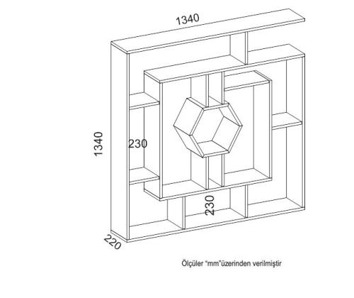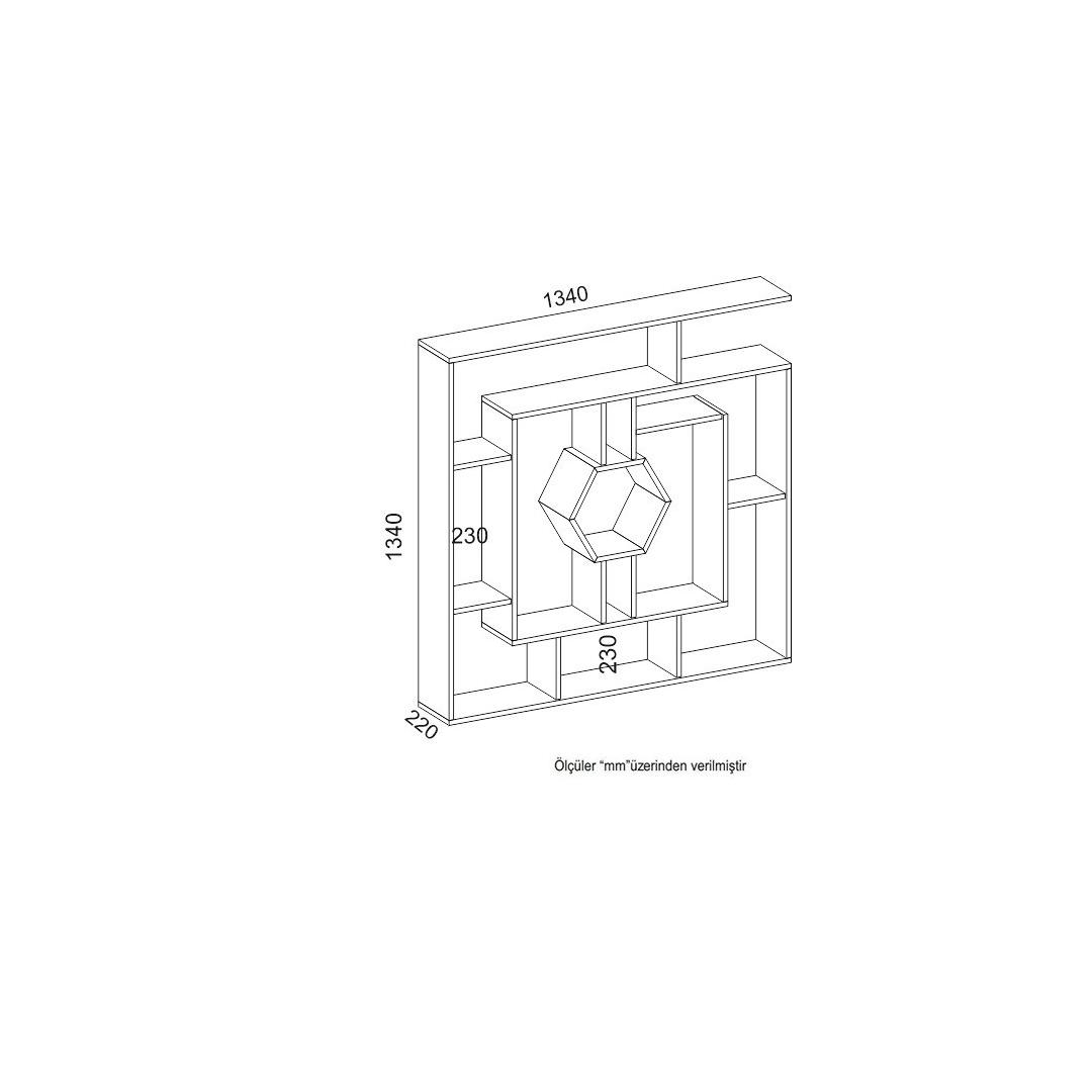 Bookshelf Size: Width: 134 cm Height: 134 cm Depth: 22 cm