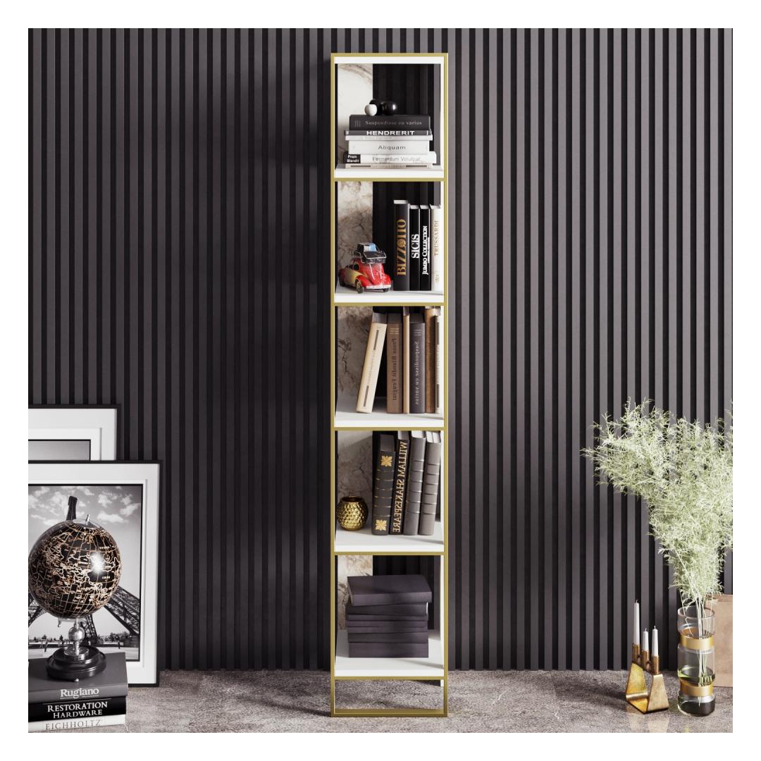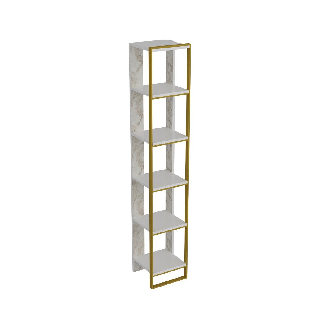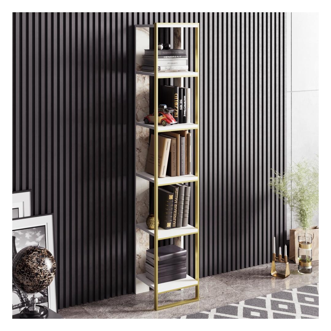 Transformeeri oma ruum elegantselt ja stiilseltTutvustame meie peenetundelist barokist inspireeritud raamaturiiulit, mis on loodud lisama teie koju glamuuri. See ülima täpsusega ja detailidele tähelepanu pöörates valmistatud raamaturiiul on meistriteos, mis tõstab iga ruumi atmosfääri. Võrratu kvaliteet ja vastupidavusMeie raamaturiiul on valmistatud 100% melamiiniga kaetud puitlaastplaadist, mis tagab erakordse tugevuse ja pikaealisuse. Kuldsed osad on valmistatud 100% metallist, mis tagab stabiilsuse ja vastupidavuse. 18 mm paksusega on see raamaturiiul ehitatud nii, et see peab vastu aja katsumusele.Mahukas hoiustamisvõimalus ja mitmekülgsusSee raamaturiiul pakub arvukate riiulitega rohkelt ruumi raamatute, dekoratiivsete esemete ja muu jaoks. Riiuli laius on 29. 5cm ja kõrgus 30. 7cm pakuvad piisavalt ruumi teie kalliste asjade eksponeerimiseks. Lisaks saab seda raamaturiiulit hõlpsasti seinale kinnitada, mis tagab täiendava stabiilsuse ja turvalisuse. Esteetiliselt meeldiv disainMeie raamaturiiuli kütkestav marmormuster lisab igale ruumile elegantsust. Pange tähele, et mustri iseloomu tõttu võivad värvitoonid fotodega võrreldes veidi erineda. Kuldse ja valge värvi kombinatsioon loob harmoonilise koosluse, mis täiendab mis tahes sisekujundust. Tehnilised üksikasjad:Toote tüüp: Toode on valmistatud puidust ja värvitud, kuid ei sisalda pinda: .Materjal: Materjal: Materjal: Materjal: Materjal: Materjal: Materjal: Materjal: materjal: 100% melamiiniga kaetud puitlaastplaatKuldne osa: 100% metallPaksus: 18mmRaamaturiiuli suurus: Laius: 32. 2cm, kõrgus: 178. 5cm, sügavus: 31. 3cmRiiuli laius: 29. 5cmRiiuli kõrgus: 30,7 cmArvukad riiulid rohkeks hoiustamiseksVõimalik kinnitada seina külge stabiilsuse lisamiseksTäiendav hoiuruum raamatute ja dekoratiivsete esemete jaoksVärv: kuldne ja valgeKontseptsioon: Barokk, Glam Värv: Gold White
