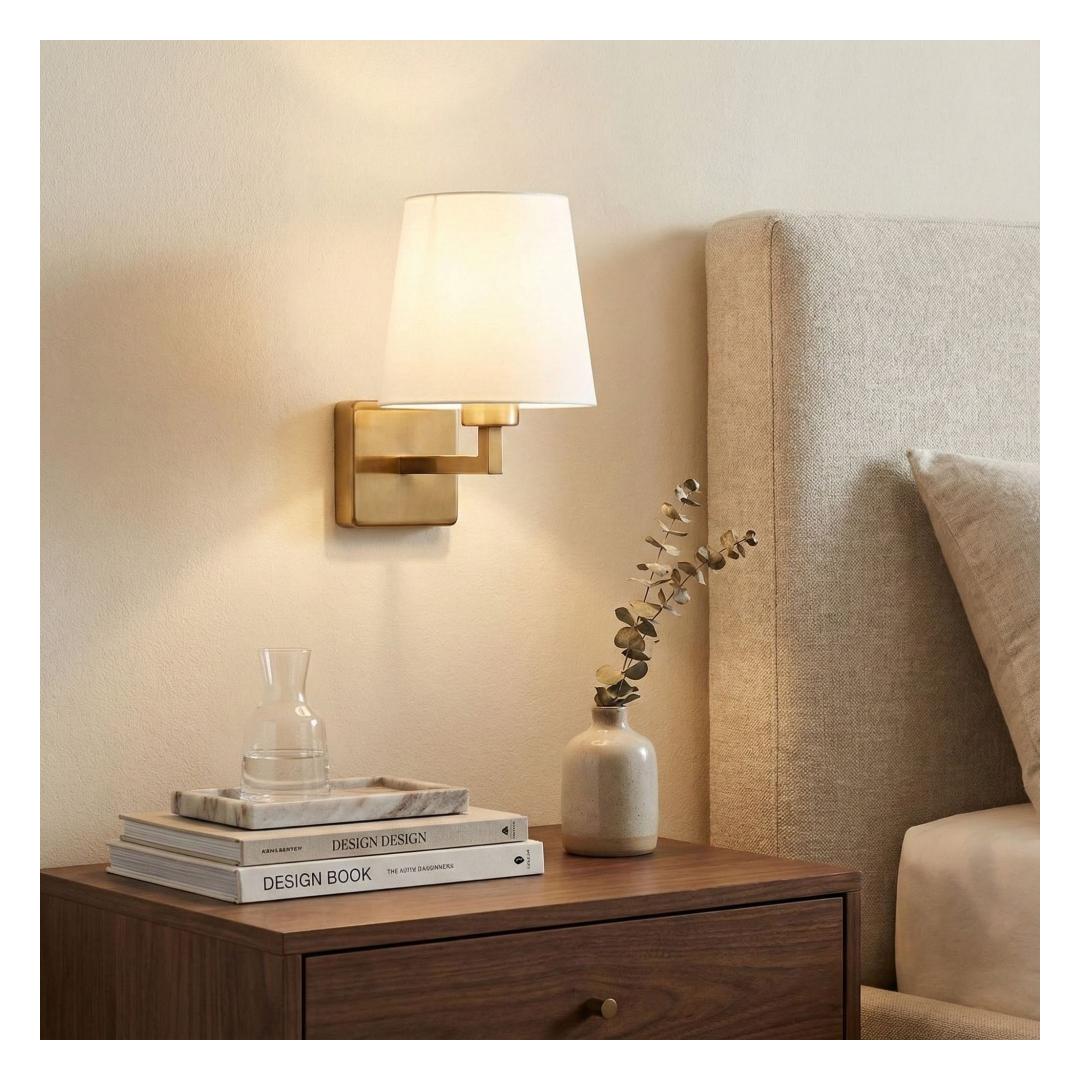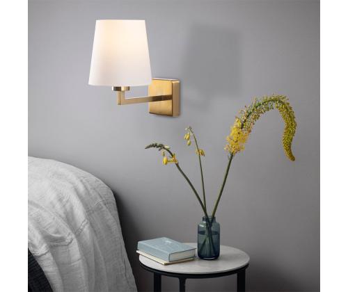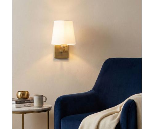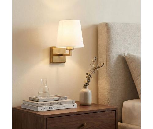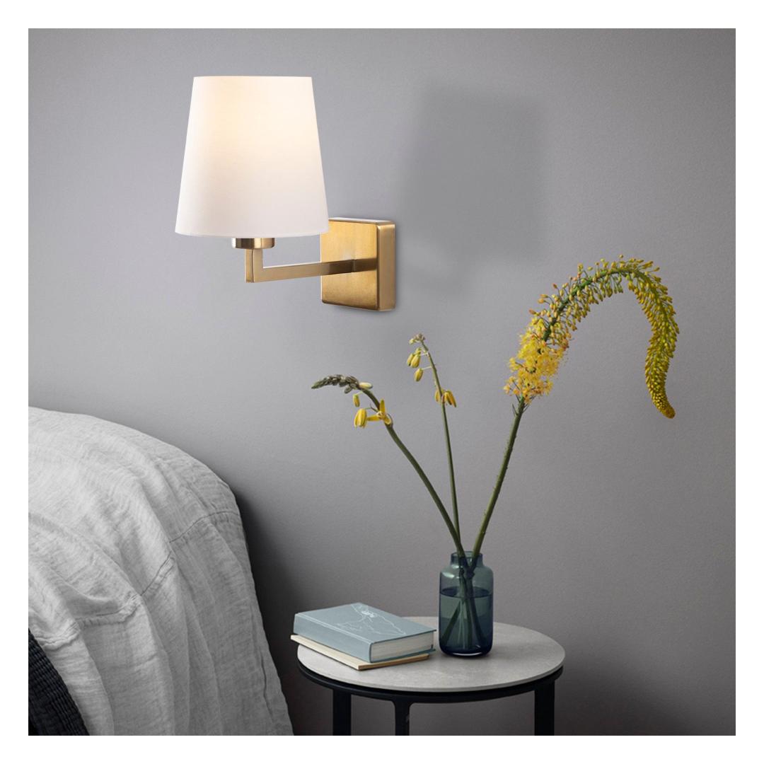 The combination of white and gold adds a touch of opulence and sophistication to any space. The sleek metal body in gold complements the white fabric cap beautifully, creating a stunning visual contrast. This wall lamp is not just a lighting fixture, but a statement piece that will enhance the overall aesthetic of your room.