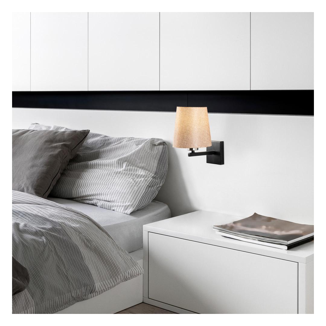 Designed with a plain and Scandinavian concept in mind, this wall lamp brings a sense of simplicity and tranquility to your space. Its sleek iron body adds a modern touch, while the soft glow emitted through the fabric cap creates a serene and calming environment.
