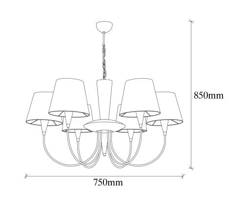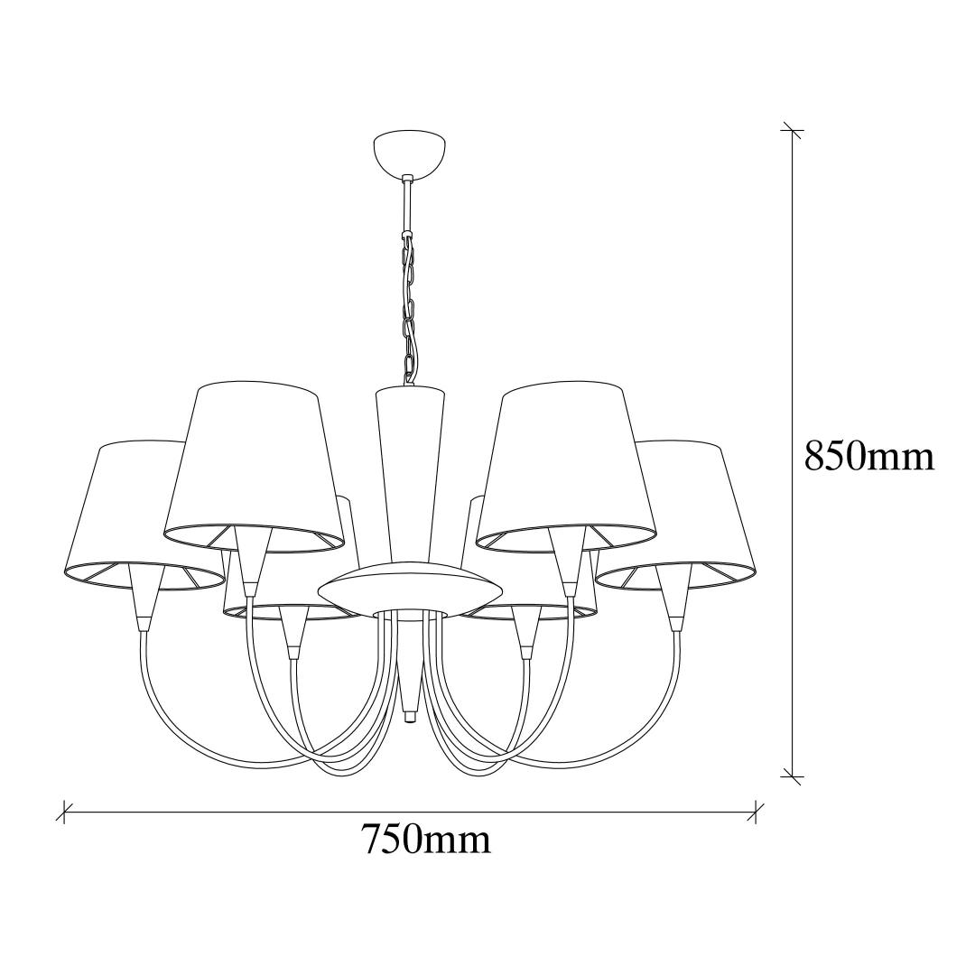 With a diameter of 75 cm and a height of 85 cm, this chandelier commands attention and creates a stunning focal point in any space. The fabric cap, with a diameter of 16 cm and a height of 15 cm, adds a touch of softness and charm to the overall design.