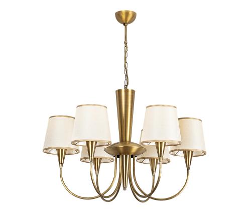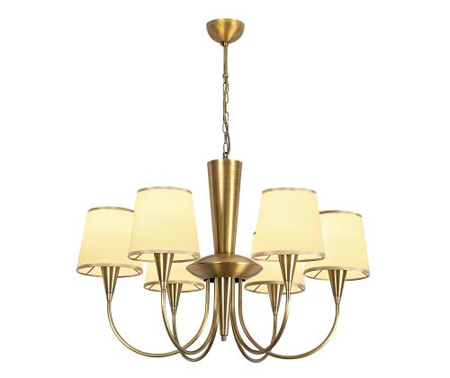 Elevate the ambiance of any room with our exquisite Antique Chandelier. Crafted with a metal body and adorned with a fabric cap, this chandelier exudes elegance and sophistication. Its timeless design effortlessly blends with any decor style, making it a perfect addition to your home or office.