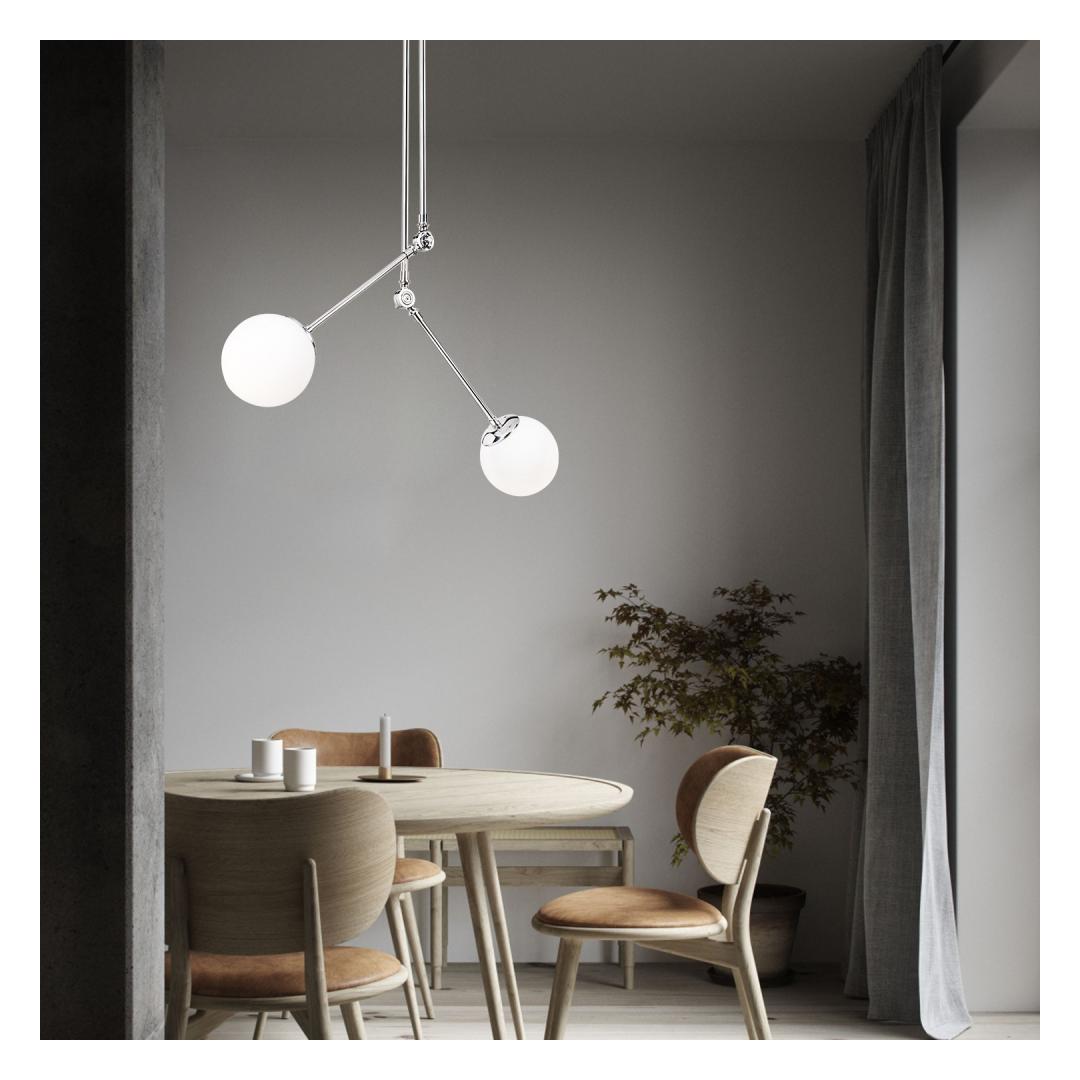 Designed with a plain, Scandinavian concept, our Chandelier seamlessly blends with any interior style. Its chrome and white color combination adds a modern and minimalist touch, allowing you to unleash your creativity and experiment with different decor themes.