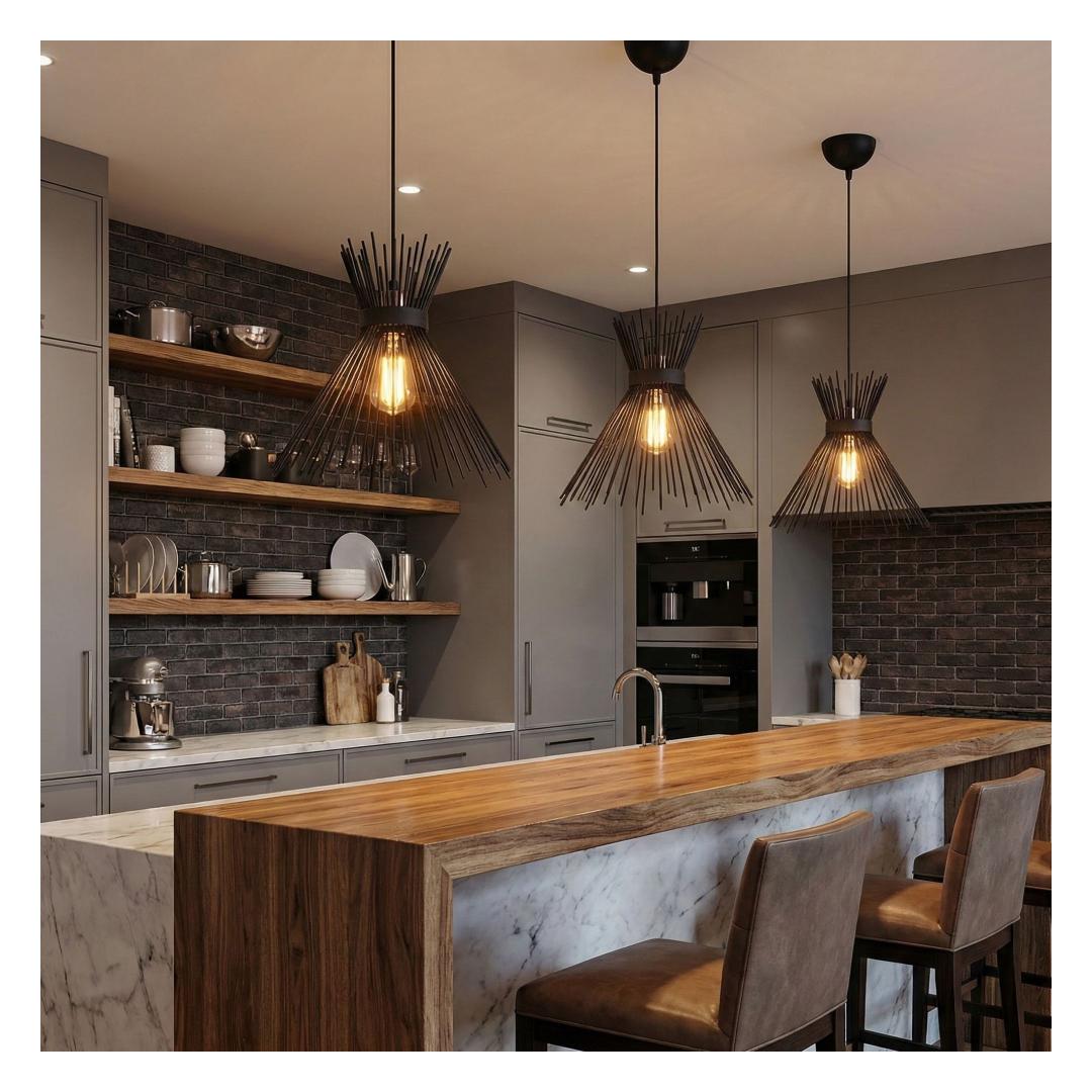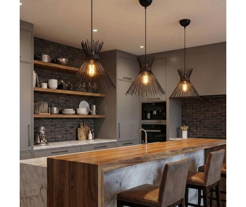 The captivating black color of this chandelier adds a touch of drama and allure to your space. Its sleek and modern design, combined with the novelty of the industrial concept, creates a unique and eye-catching focal point that will leave your guests in awe.