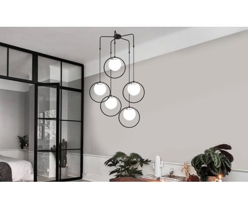 Transform your living space with our stunning Iron Body Chandelier. This exquisite piece features a sleek black and white design that effortlessly blends modern and industrial styles. The glass cap adds a touch of elegance, making it the perfect statement piece for any room.