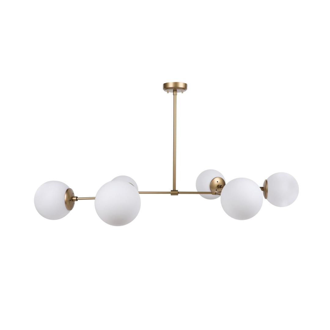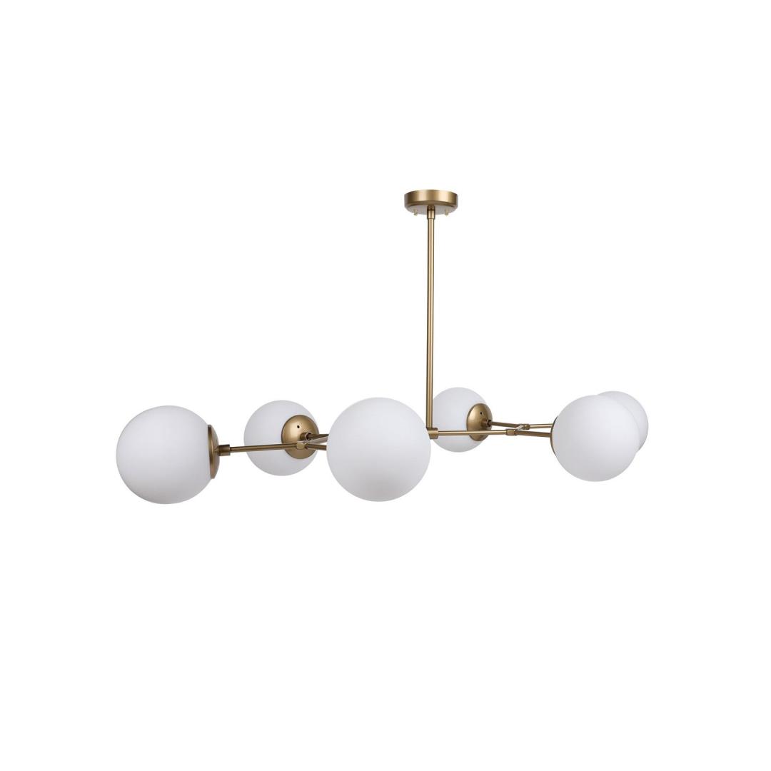 With its sleek and minimalist design, this chandelier effortlessly adds a touch of sophistication to any room. The soft glow emitted by the yellow and white glass cap creates a warm and inviting ambiance, making it the perfect centerpiece for your living room, dining area, or bedroom.