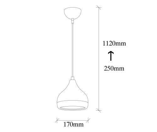 The chandelier features a black and copper color combination, adding a touch of luxury and warmth to your space. Its compact size, with a diameter of 17 cm and a height of 112 cm, makes it suitable for various rooms, from living rooms to dining areas and bedrooms.