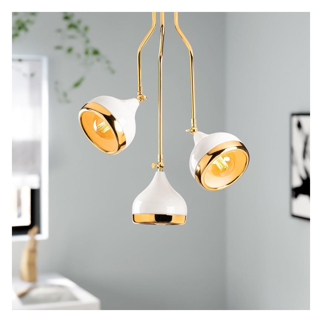 The chandelier features a sturdy metal body, ensuring durability and longevity. Its exquisite white and gold color combination adds a touch of sophistication, making it a perfect fit for any contemporary or Scandinavian-inspired decor.