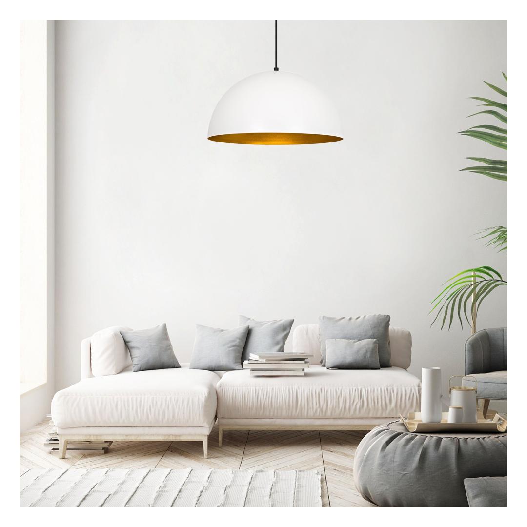 The RON BODY chandelier boasts a sleek and stylish design that will instantly become the focal point of your living space. Its unique combination of white and gold colors exudes luxury and elegance, making it a must-have for those who appreciate the finer things in life.