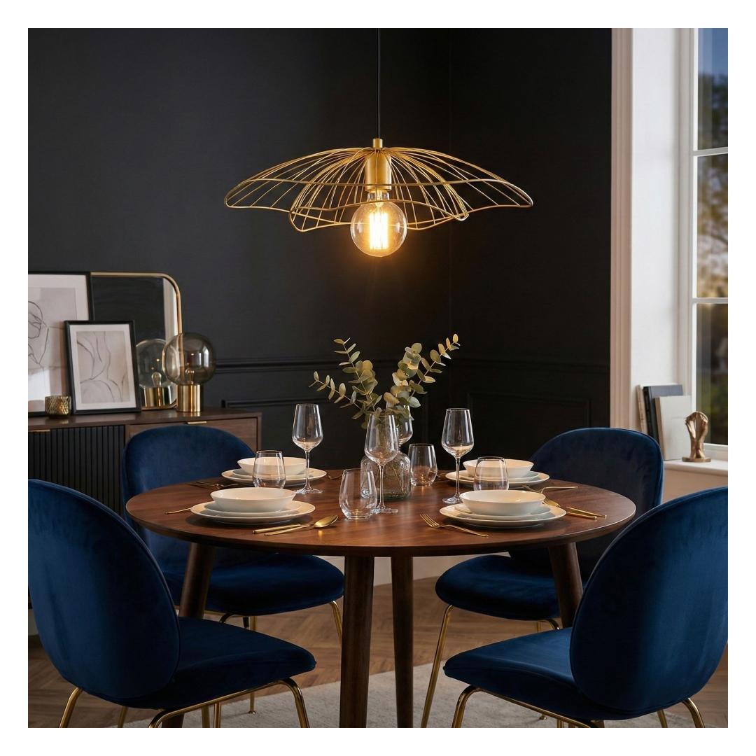 The chandelier comes with a base plate that has a diameter of 10 cm and a height of 6 cm, ensuring a secure and stable installation. The length of the cable is 90 cm, providing flexibility in placement. The socket type is E27, allowing for easy compatibility with a variety of light bulbs.