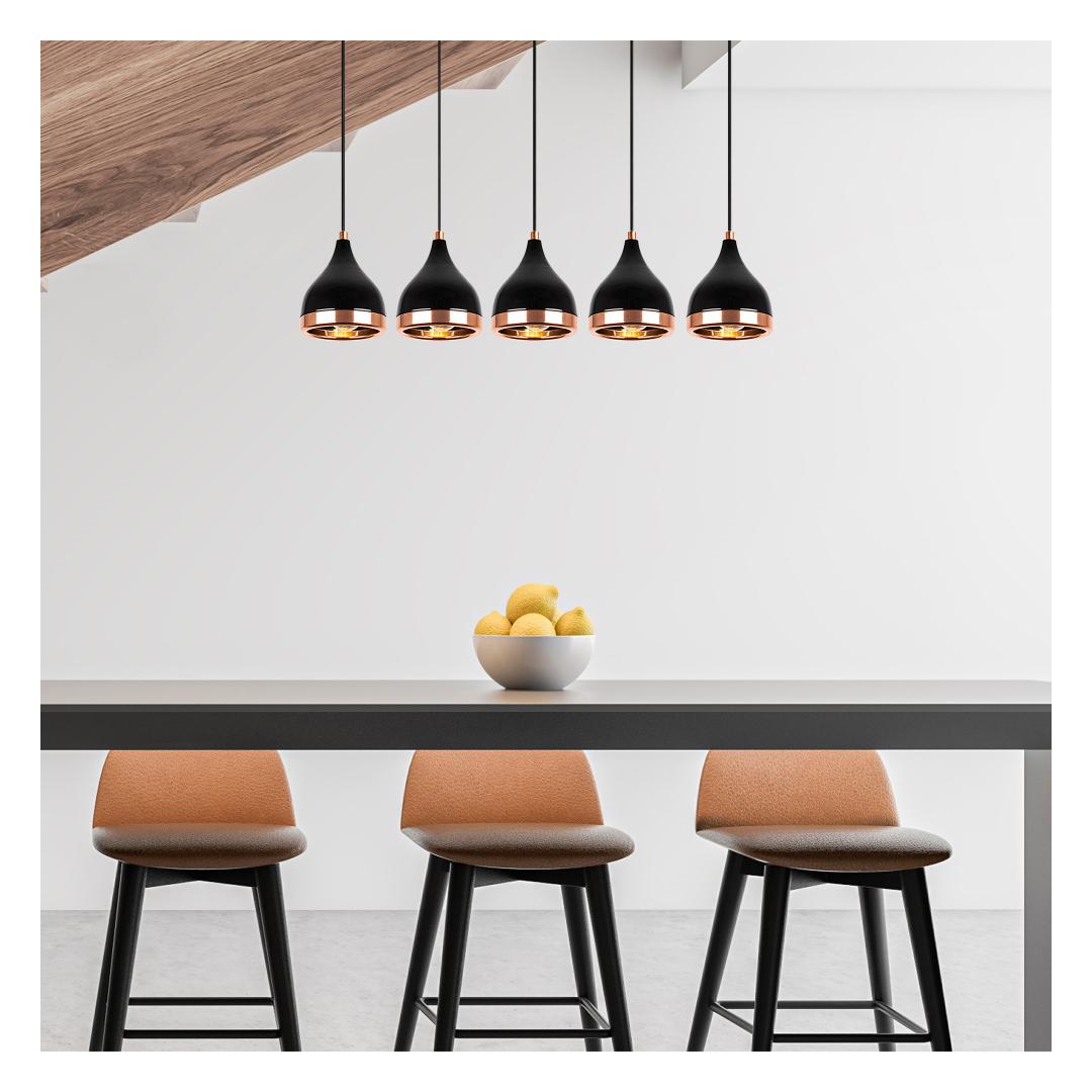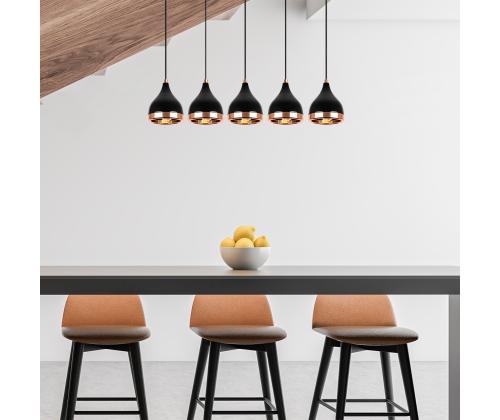 The contrasting colors of black and copper create a visually striking combination that adds a touch of glamour to any room. The sleek black finish complements the warm copper accents, resulting in a chandelier that effortlessly blends modern and traditional elements.