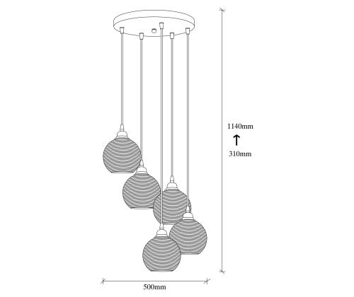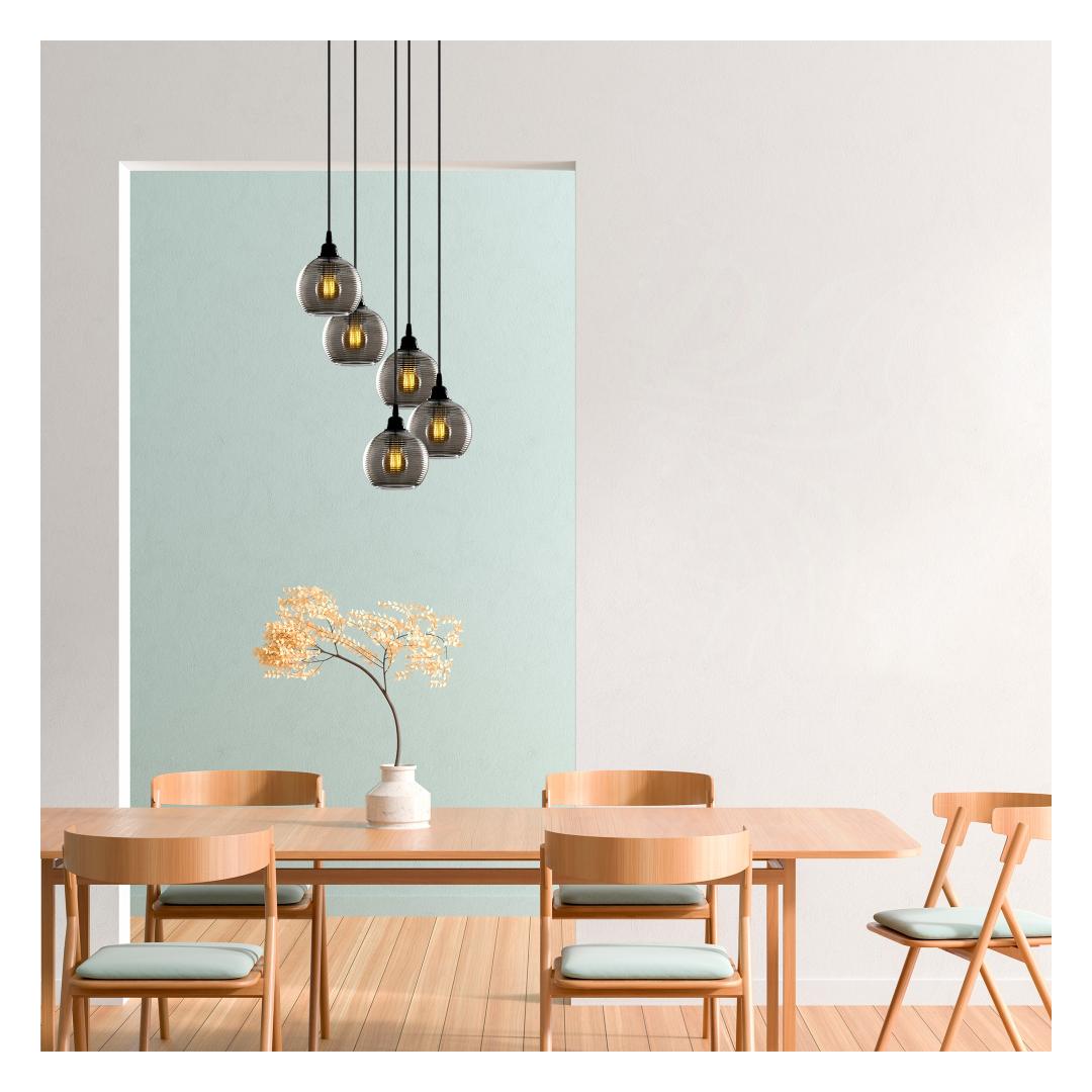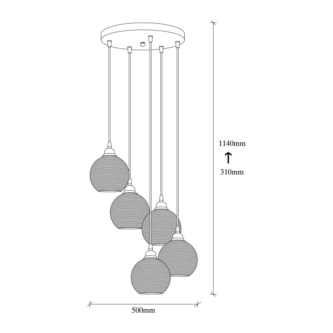 Equipped with 5 E27 sockets, this chandelier provides ample lighting to brighten up your surroundings. Each socket can accommodate a maximum of 40W, ensuring a well-lit space that is both functional and visually appealing. The glass cap not only adds a touch of elegance but also diffuses the light, creating a soft and inviting glow.