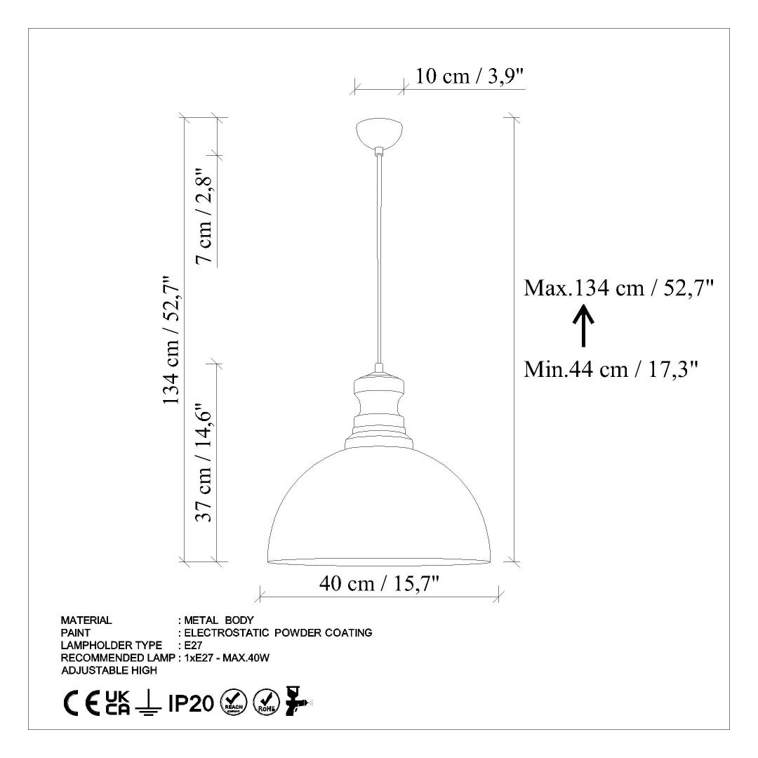 - Socket Type: 1 x E 27 Max 40 W