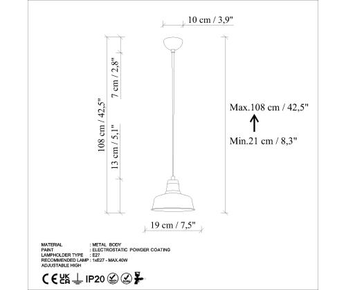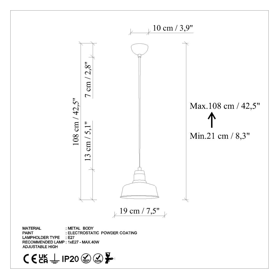 - Socket Type: 1 x E 27 Max 40 W