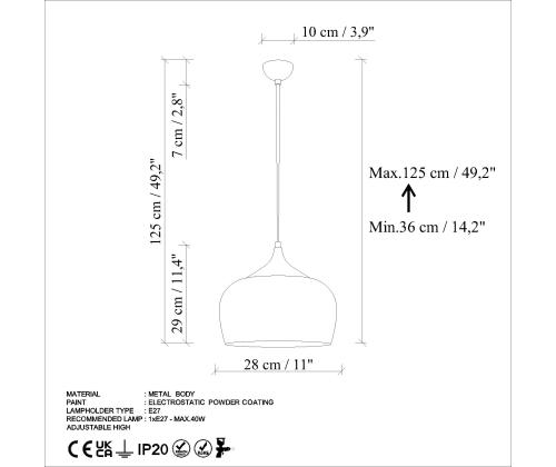 - Socket Type: 1 x E 27 Max 40 W