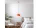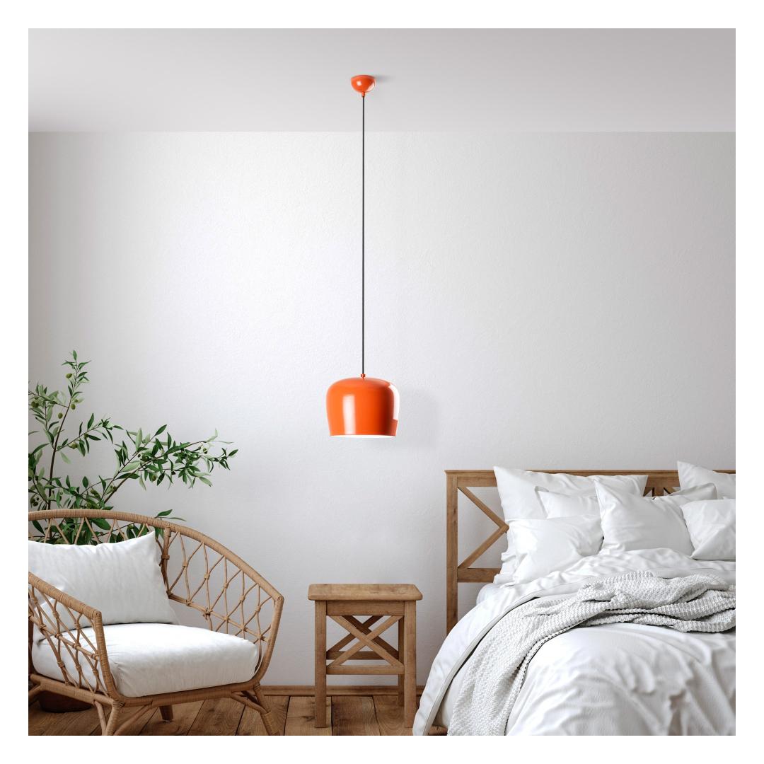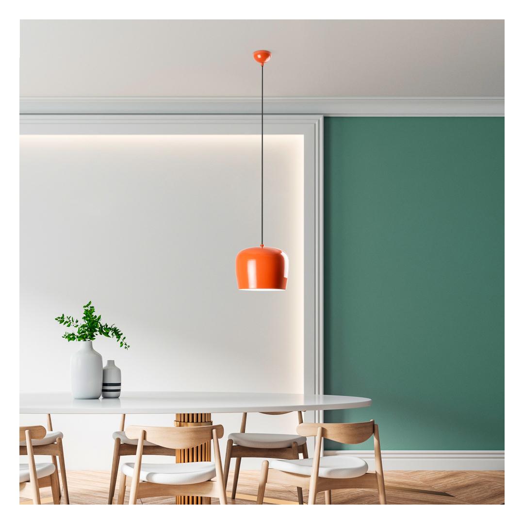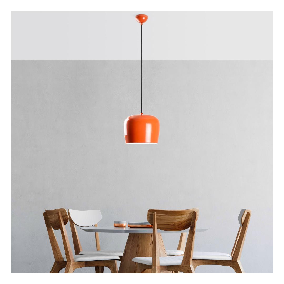 The vibrant orange color of this chandelier will instantly brighten up your space and become the focal point of any room. Its sleek metal body adds a modern touch, making it the perfect addition to any contemporary or traditional decor.