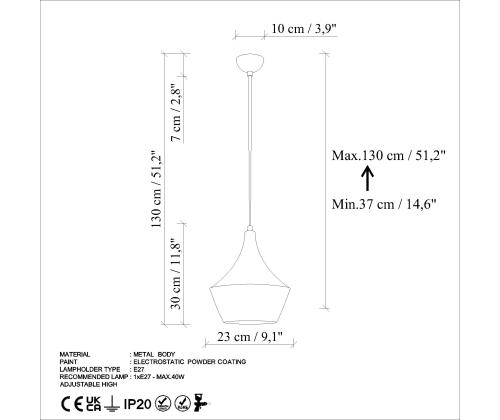 - Socket Type: 1 x E 27 Max 40 W
