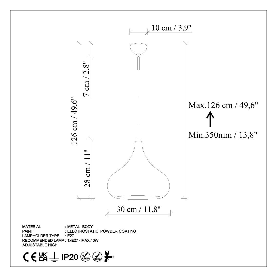 - Socket Type: 1 x E 27 Max 40 W