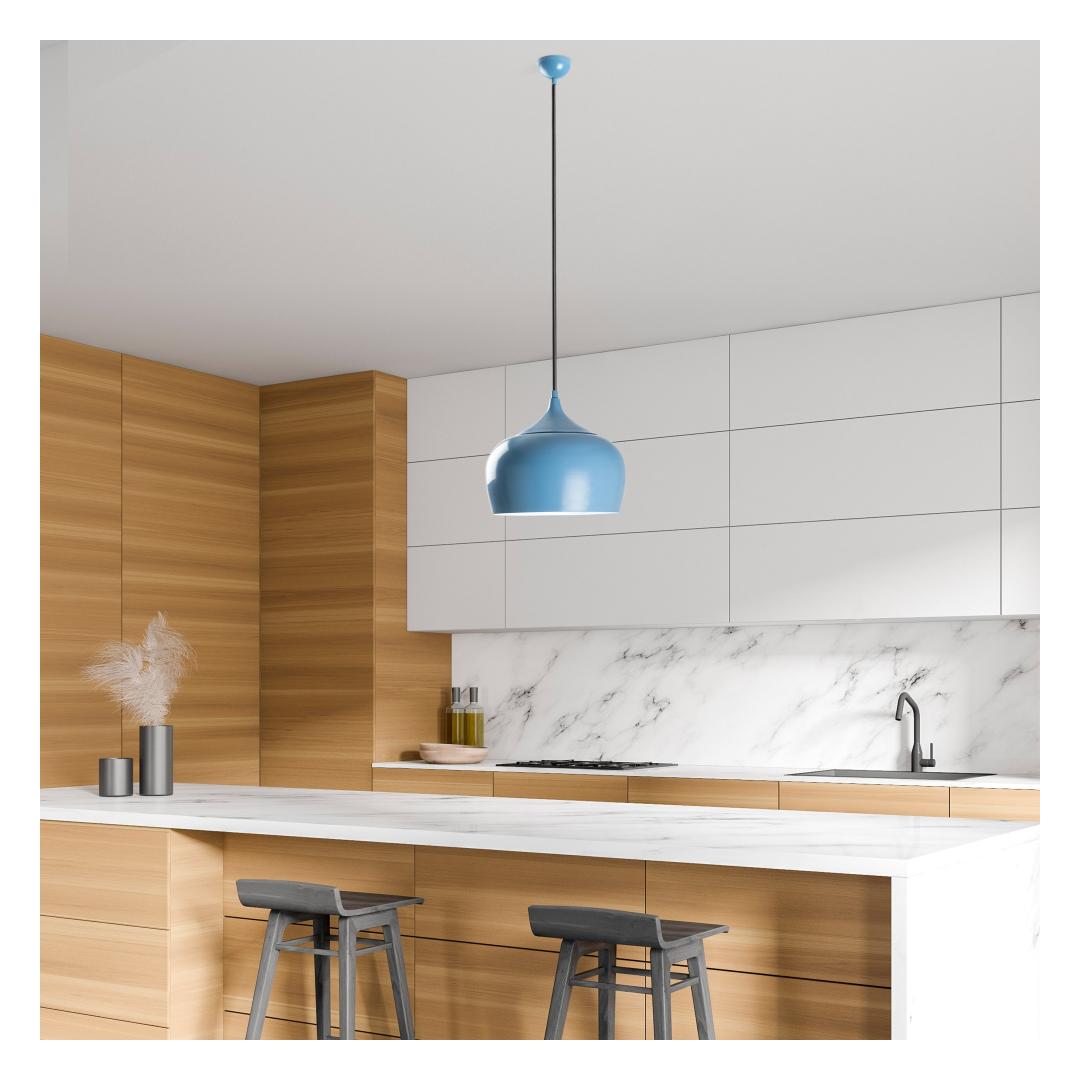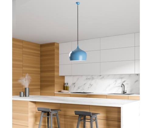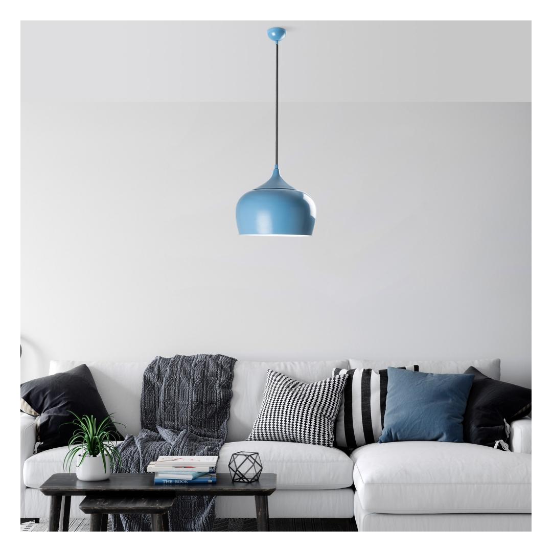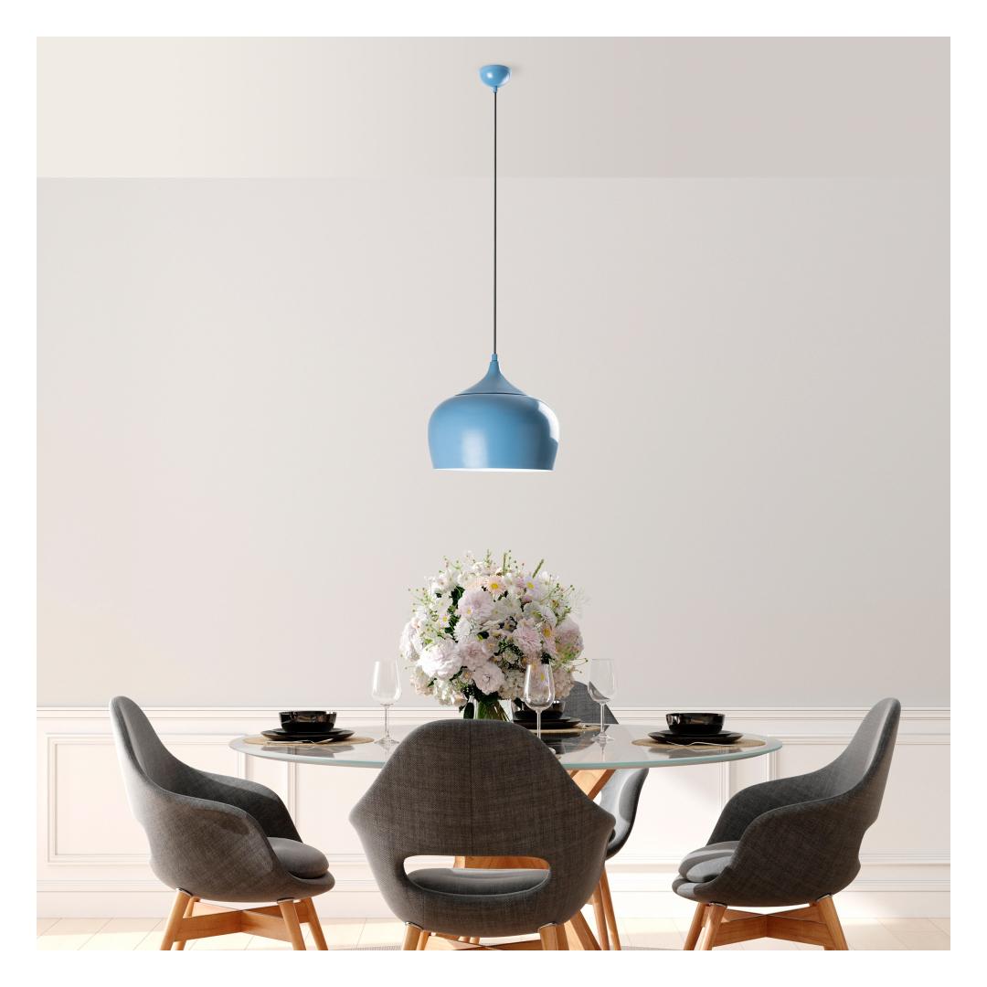 The sleek metal body of this chandelier is beautifully crafted, making it a statement piece in any room. The adjustable height allows you to customize the look to fit your space perfectly, whether you hang it low for a cozy feel or high for a dramatic effect. The light blue color adds a pop of color that will brighten up your home and create a stylish focal point.