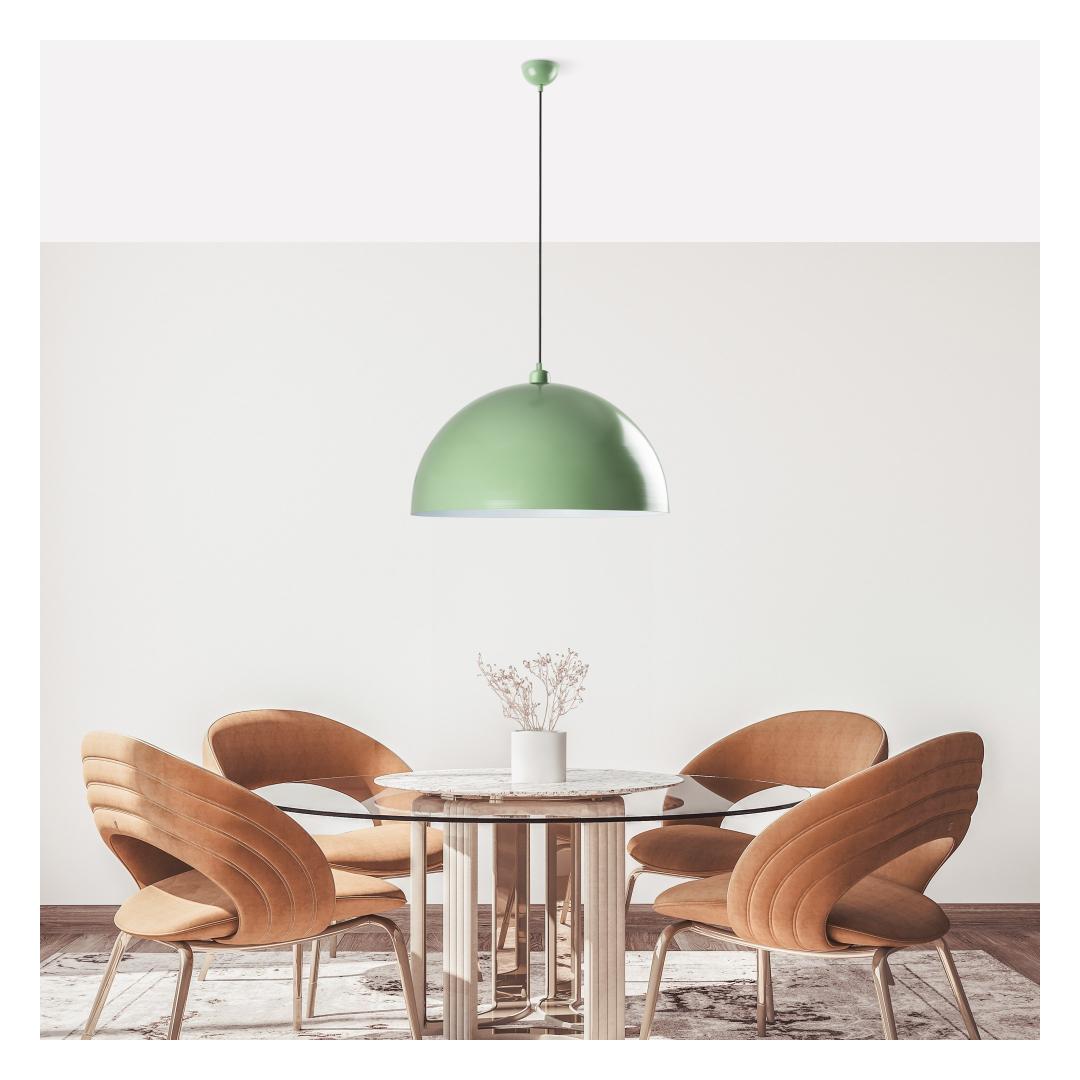 The sleek metal body of the chandelier is beautifully crafted, making it a focal point in any room. The mint color adds a pop of freshness and modernity, perfect for contemporary or traditional interiors.