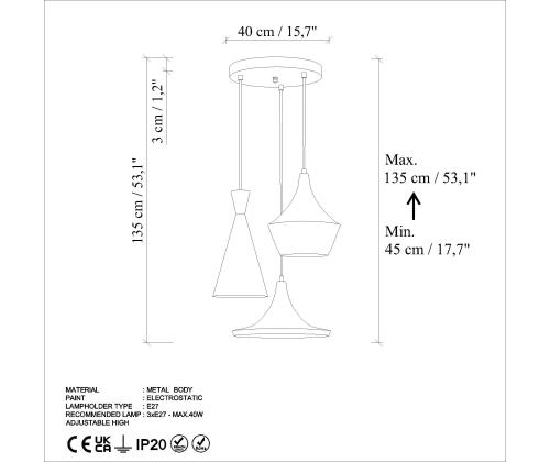 - Socket Type: 3 x E 27 Max 40 W