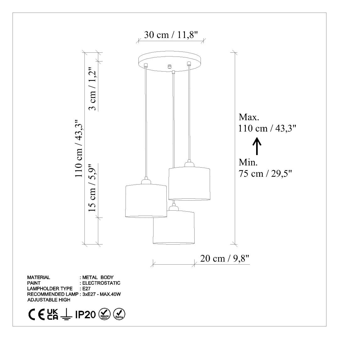 With its 3 x E27 sockets, this chandelier provides ample lighting to brighten up any room. The metal body ensures durability and longevity, so you can enjoy the beauty of this piece for years to come. Add your favorite bulbs to create a warm and inviting atmosphere that will make you never want to leave your home.